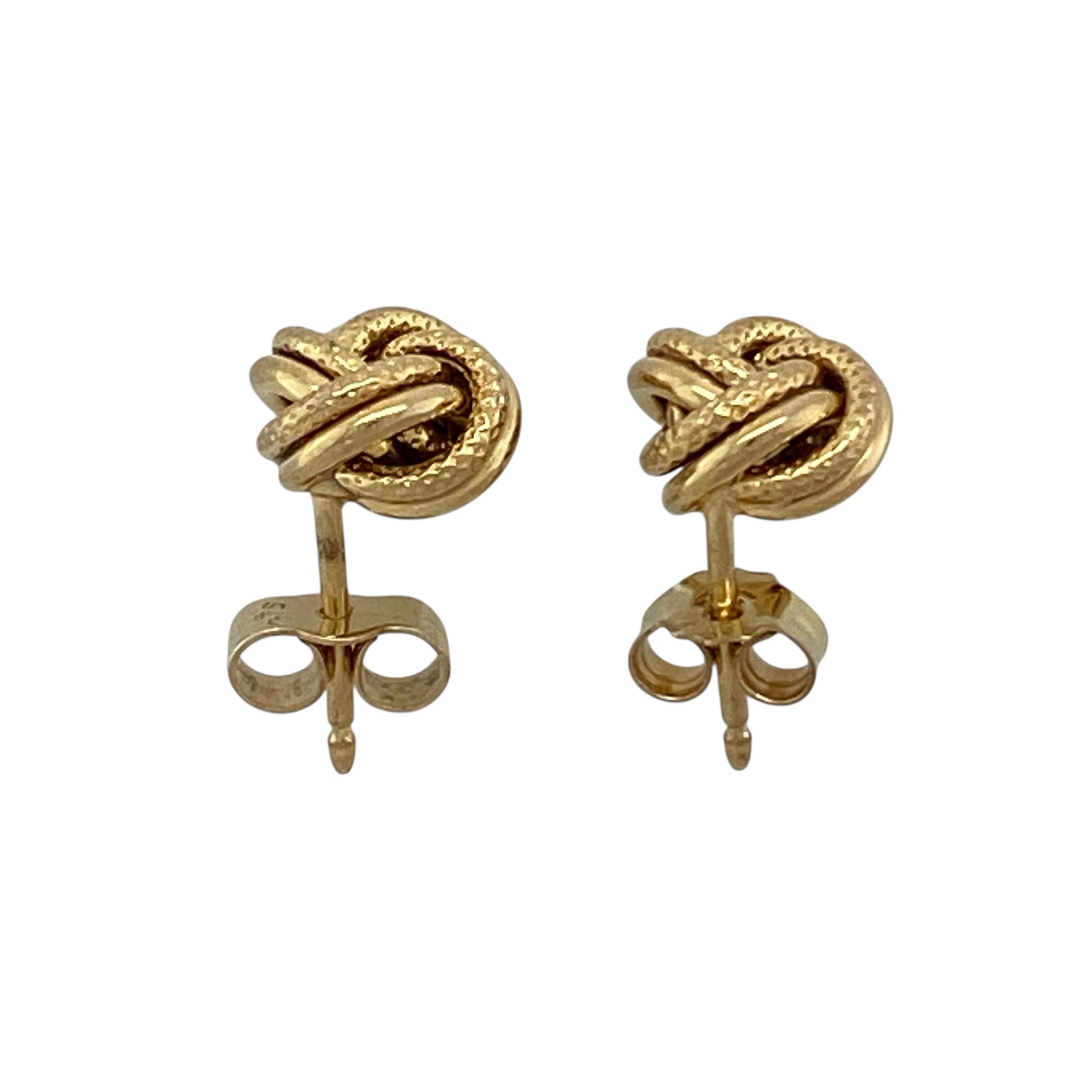 Bring timeless style and subtle detail to your collection with these pre-owned 9ct yellow gold stud earrings, designed in a classic knot shape with textured finish.