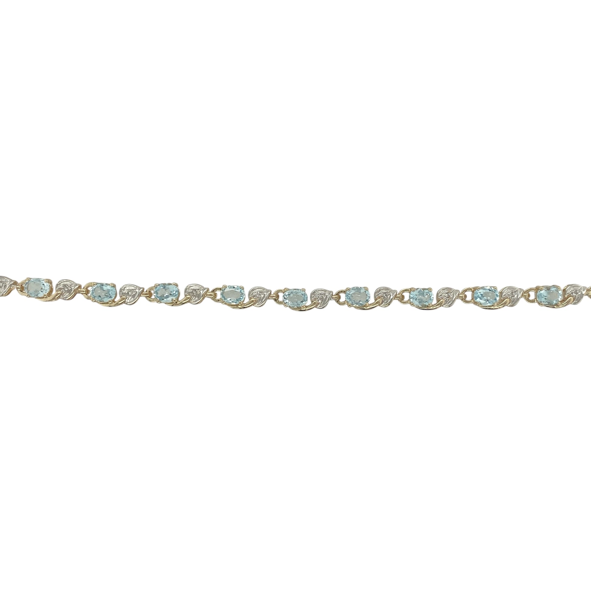Design: The bracelet features a row of oval blue topaz stones, each measuring 5mm by 4mm, interspersed with diamond accents for added brilliance.