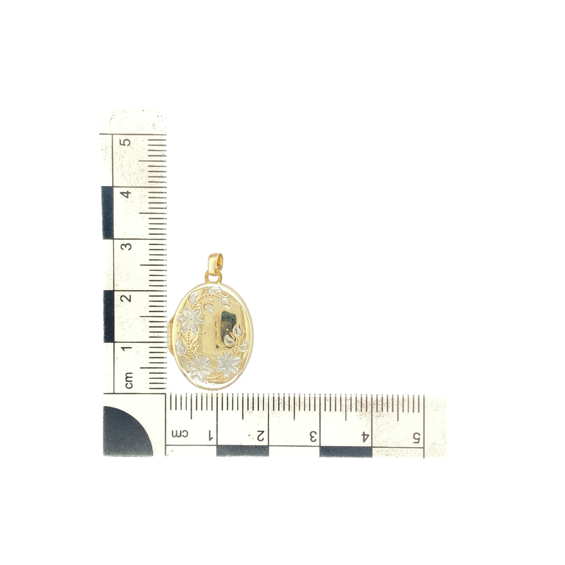 Design: The locket features a delicate floral pattern in contrasting yellow and white gold tones, creating a soft two-tone effect with intricate detailing on the front. Its polished finish adds a touch of sophistication to this classic design.