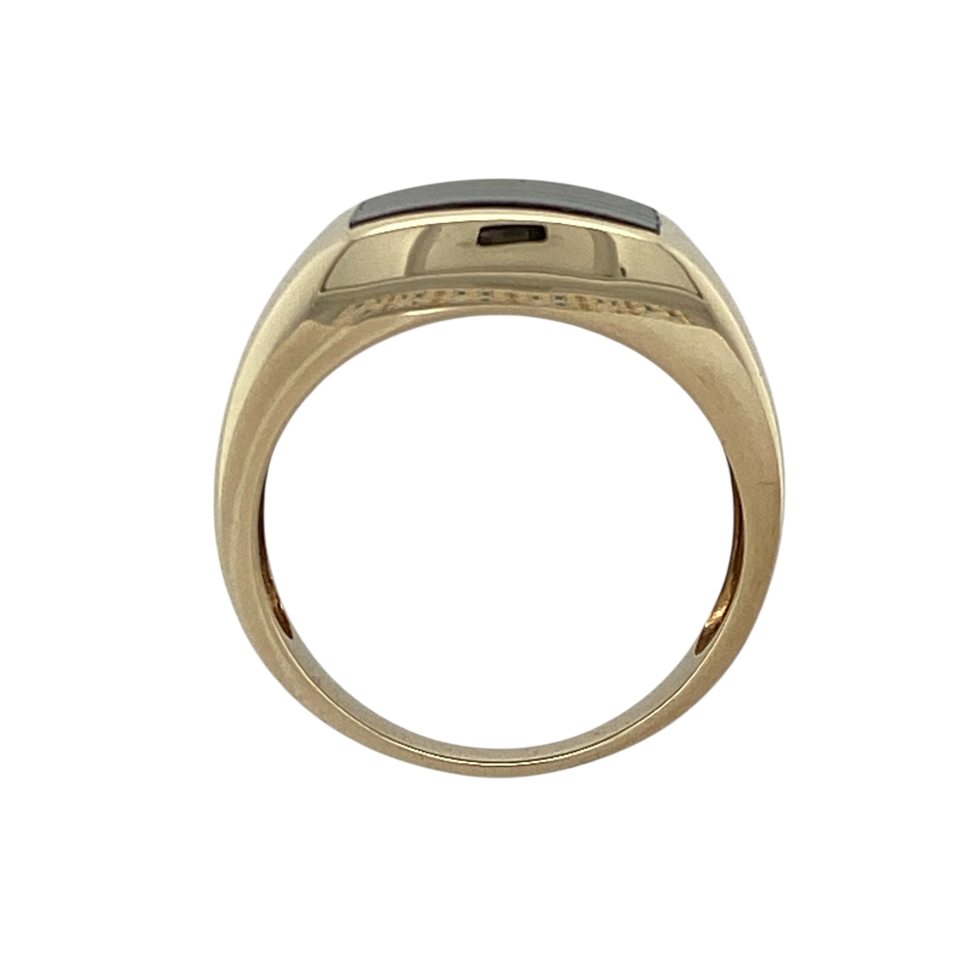 Material: Made from 9-carat yellow gold, the polished finish enhances the depth of the dark inlay and gives the ring a luxurious tone.