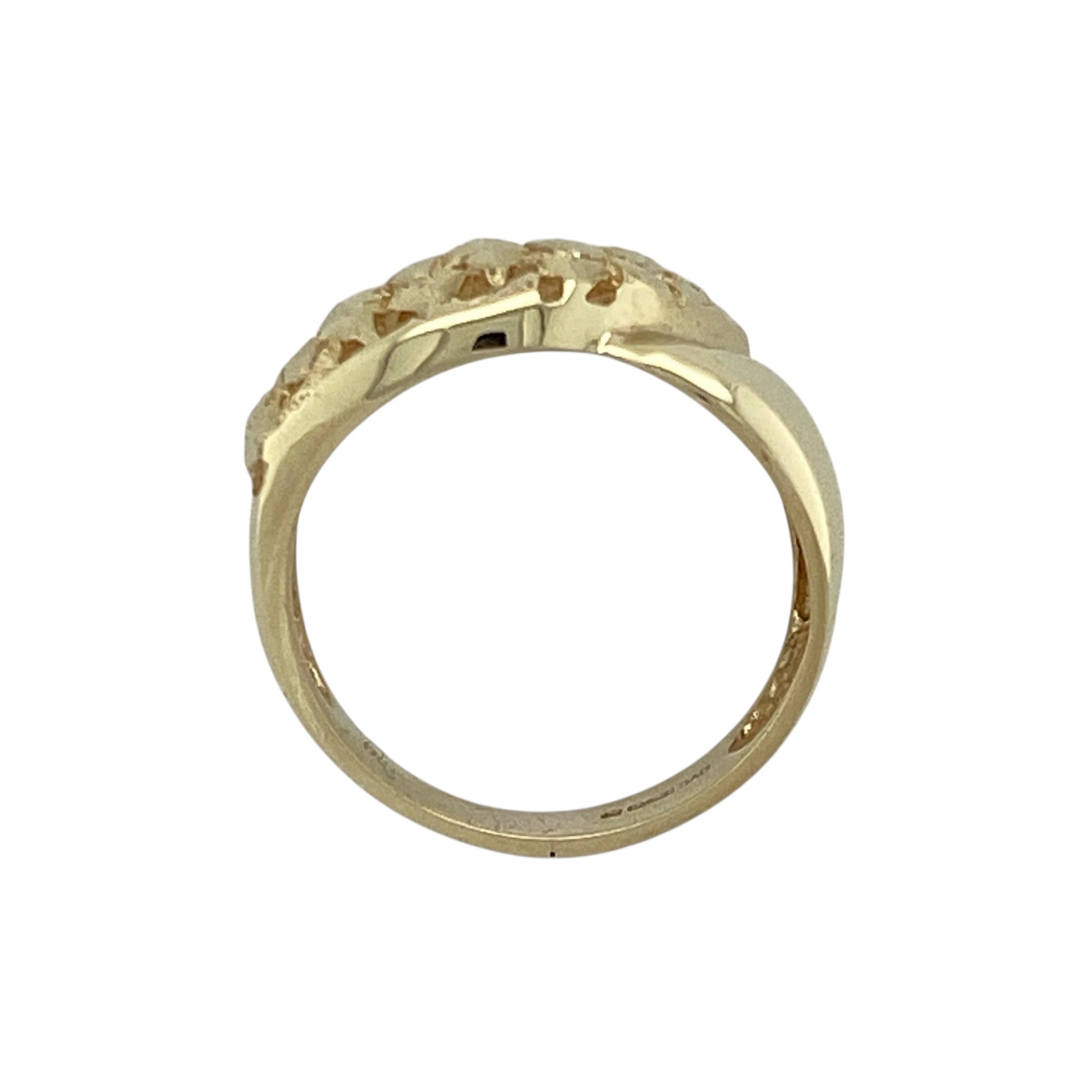 Bring statement style and golden brilliance to your collection with this pre-owned 9ct yellow gold open sparkle patterned wide band ring—an eye-catching design with a touch of elegance.