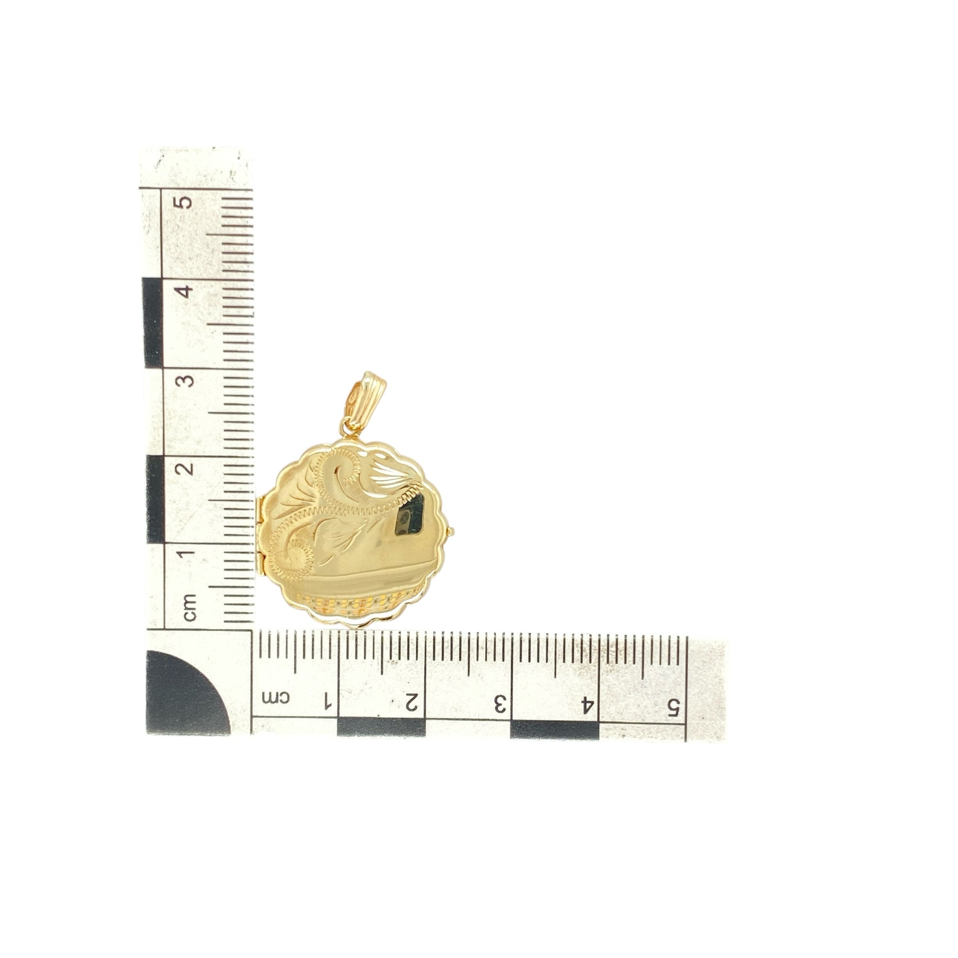 Treasure your memories in timeless style with this pre-owned 9ct yellow gold patterned round locket—elegant detail with sentimental charm.
