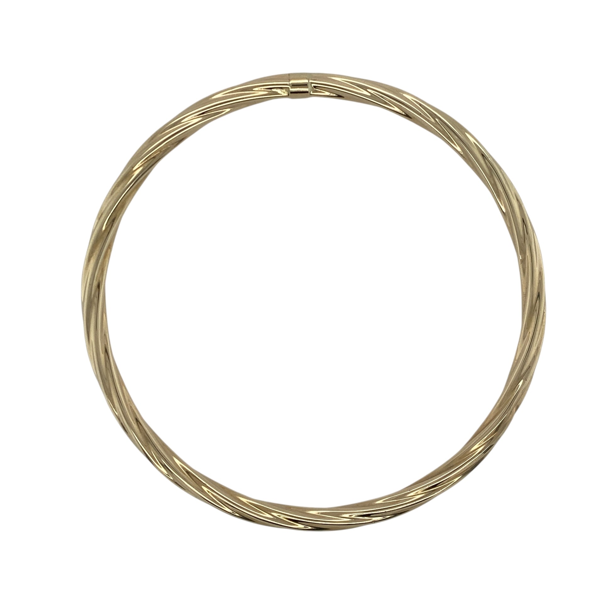 Bring classic elegance and subtle texture to your collection with this pre-owned 9ct yellow gold twisted bangle—perfect for adding timeless sophistication to any look.