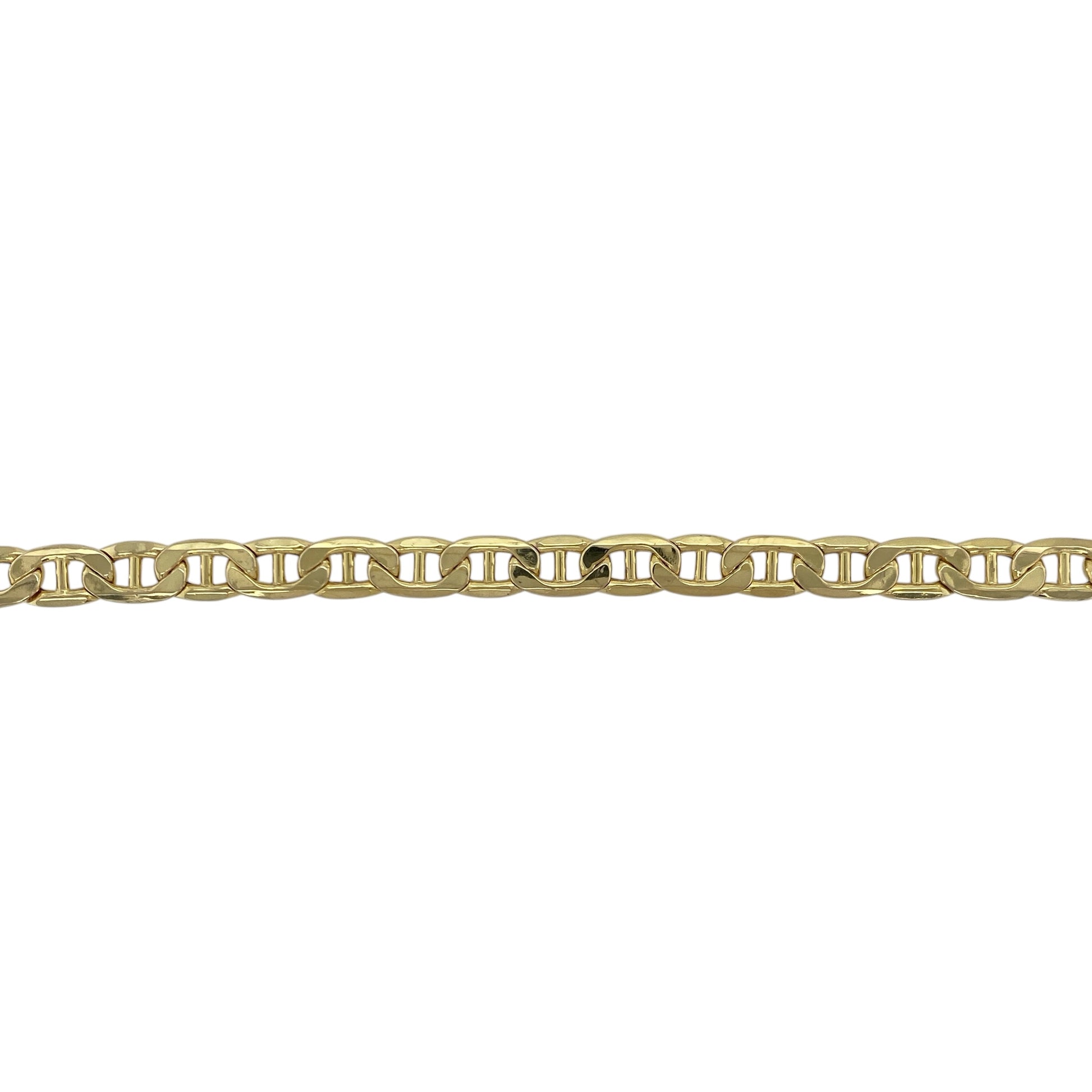 Design: The bracelet features traditional 7mm-wide anchor-style links, offering a bold yet elegant appearance with smooth, polished surfaces that catch the light beautifully.