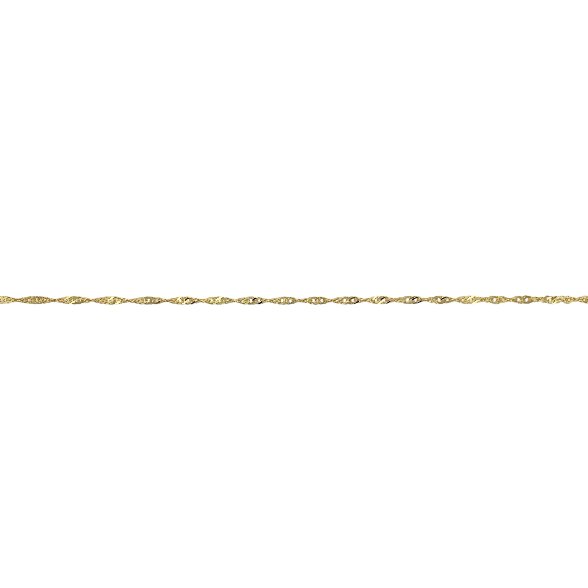 Design: The chain features a traditional Singapore link style with a 2mm link width, creating a twisted, reflective finish that catches the light beautifully.