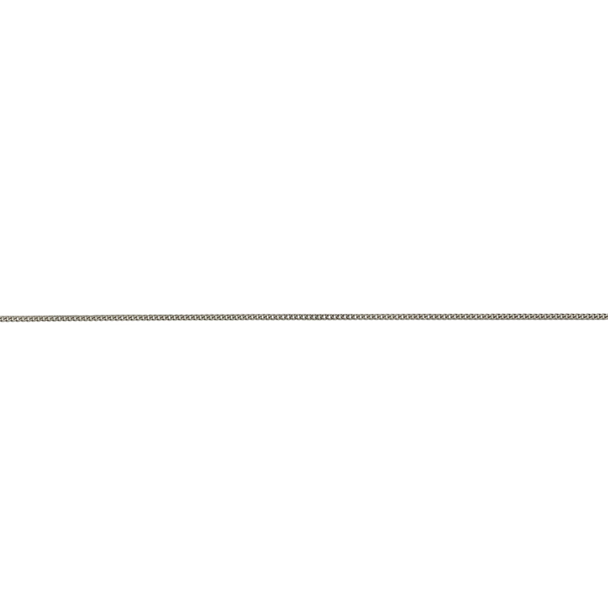 Design: The chain features a classic curb link profile with fine, closely set links that sit smoothly against the neckline. With an approximate link width of 1mm, it offers a subtle and understated look.