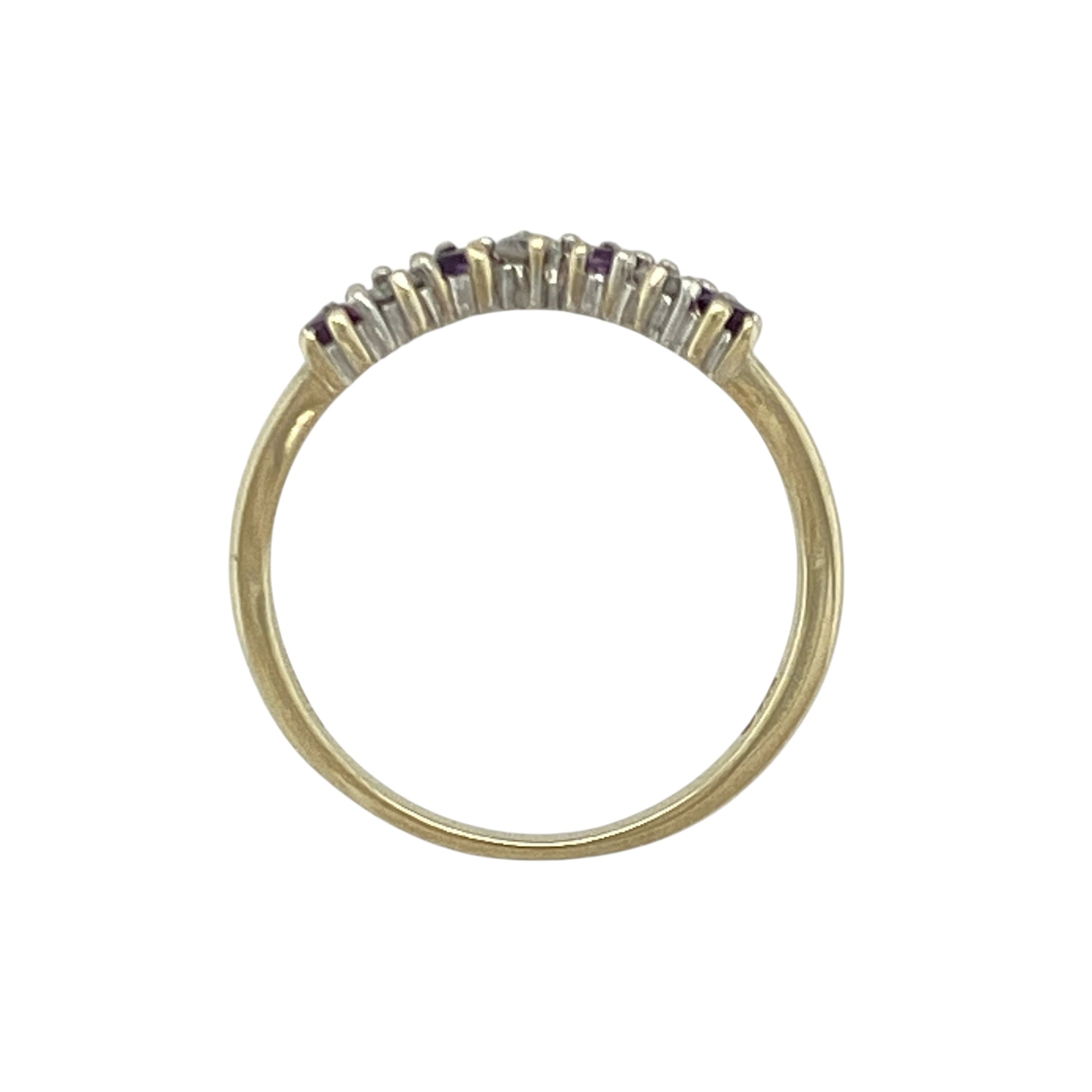 Design: This size L–M ring features a classic wishbone shape set with 2mm round amethysts, complemented by delicate diamonds for a balanced, light-catching finish.