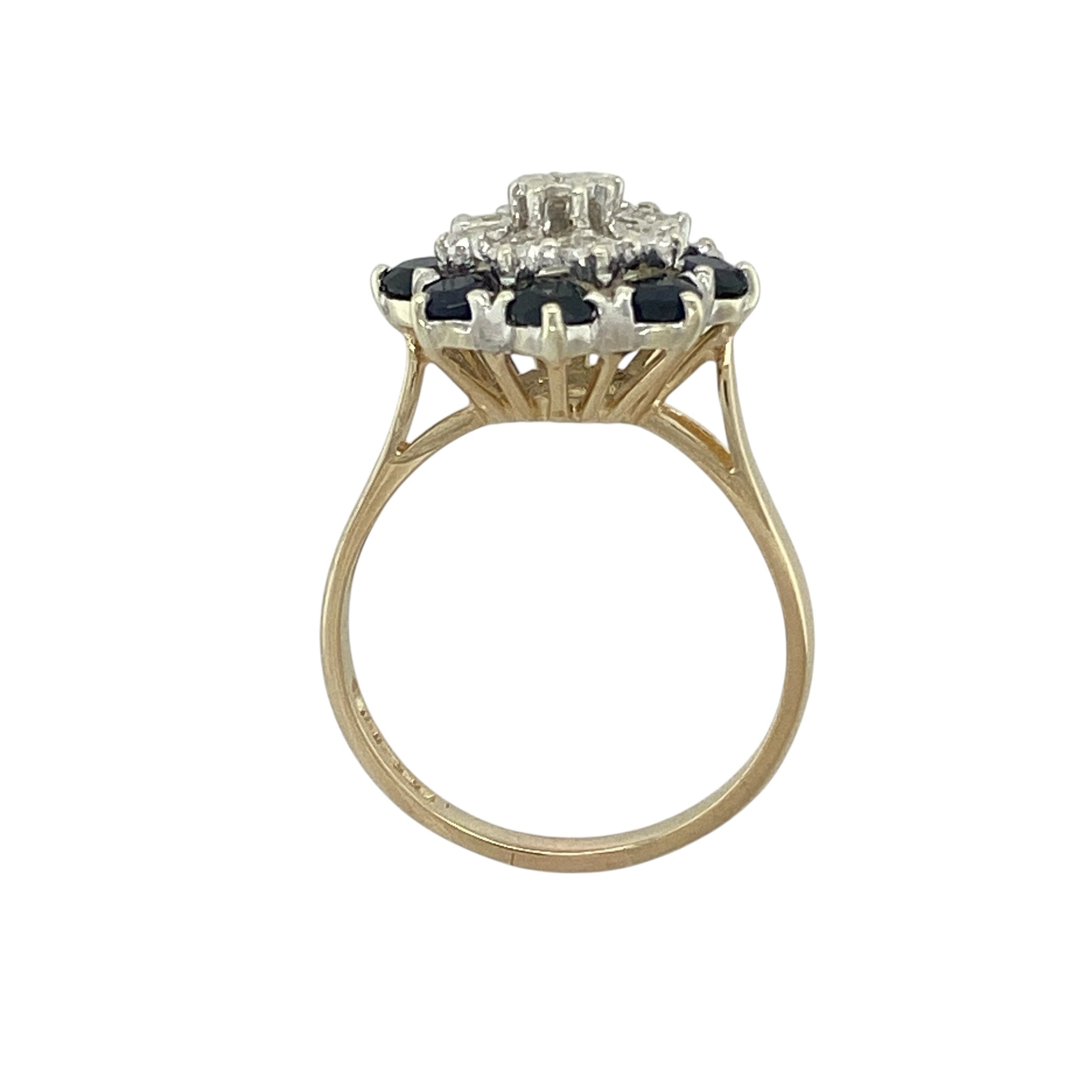 9ct Gold Diamond & Sapphire Set Flower Cluster Ring