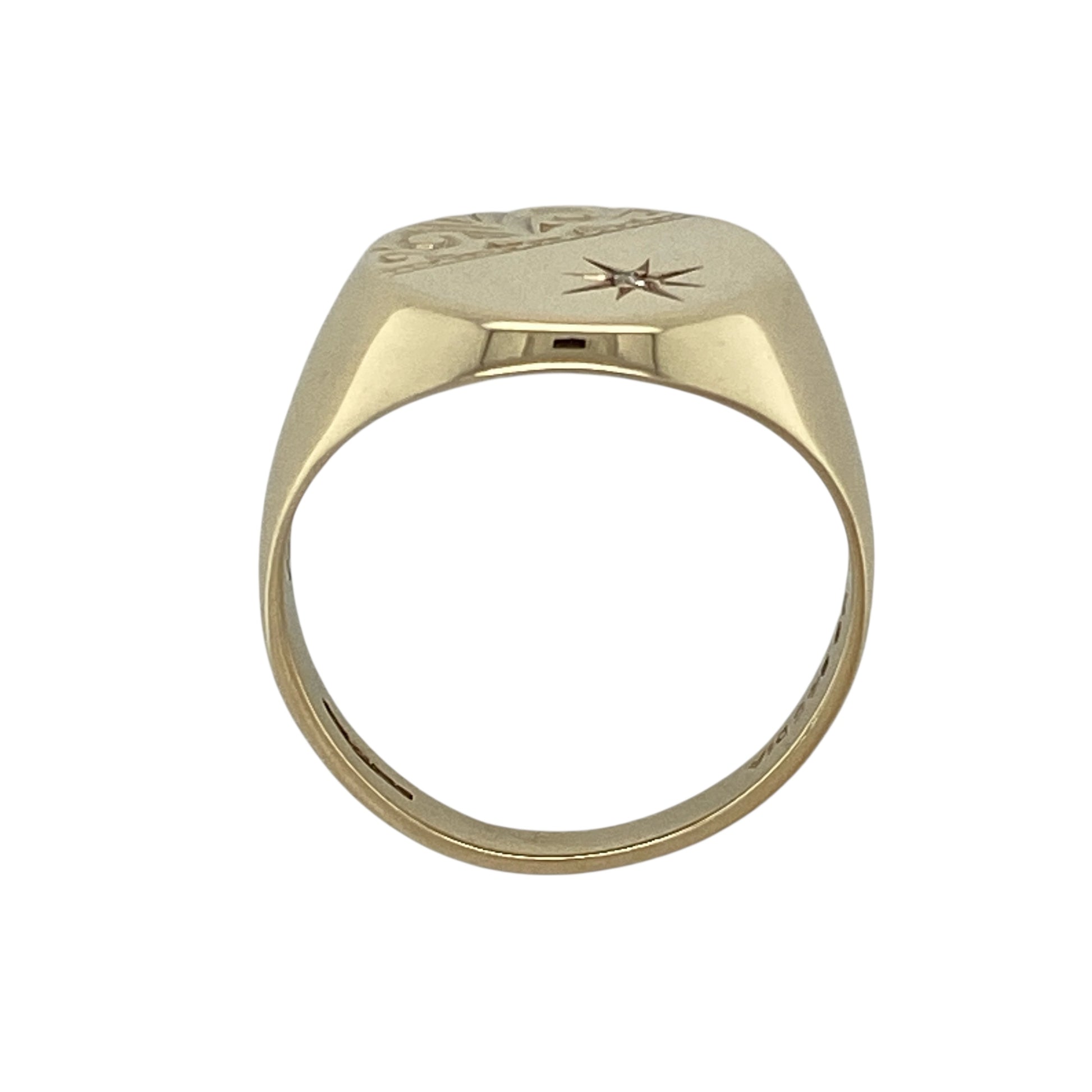 Bring bold character and refined detail to your jewellery collection with this pre-owned 9ct yellow gold diamond set patterned corner oval signet ring, a striking piece with classic styling.