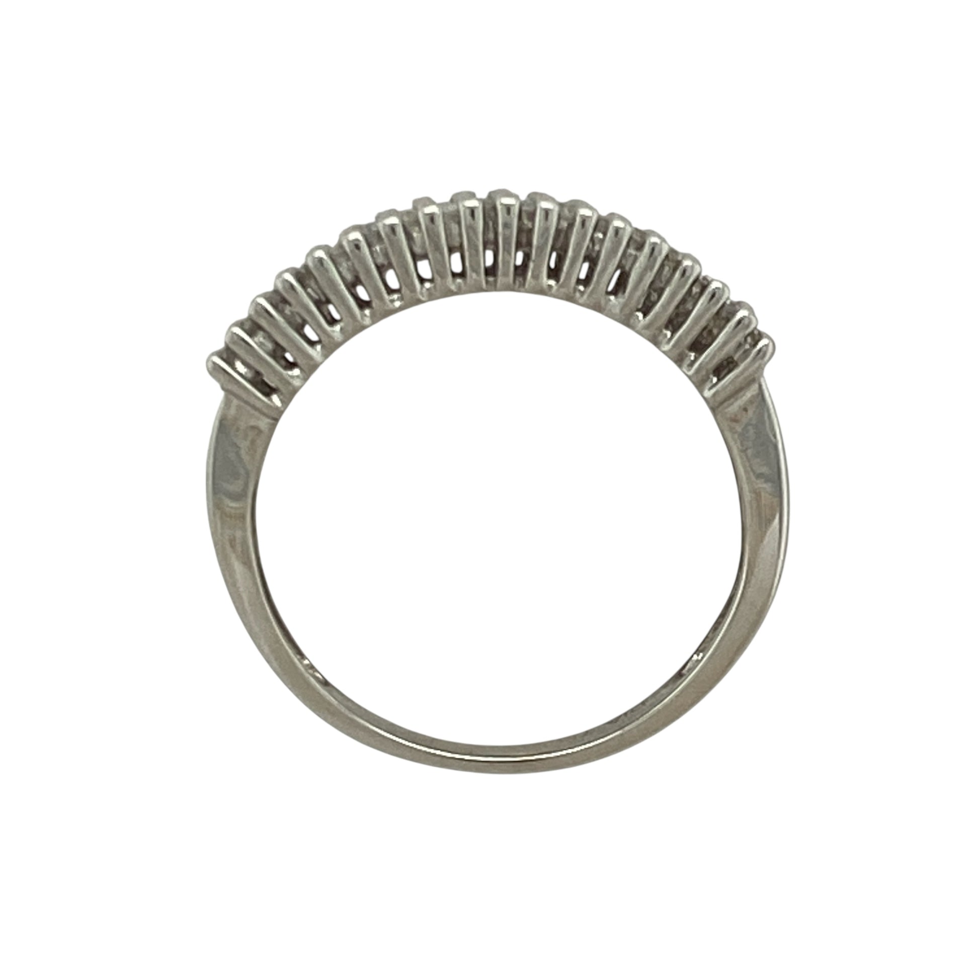 Bring bold sparkle and modern elegance to your collection with this pre-owned 9ct white gold four-row diamond band ring—an impressive piece offering radiant brilliance and contemporary style.