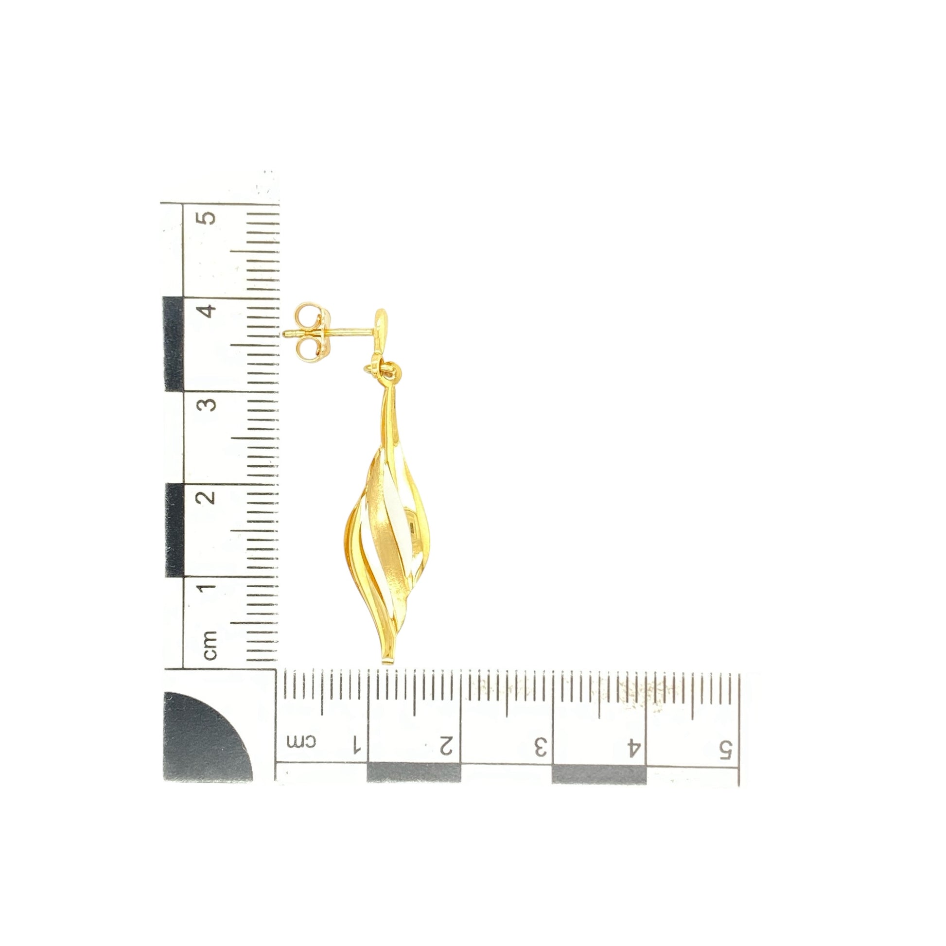 A stylish pair of gold drop earrings—ideal for those searching for swirl earrings, yellow gold dangle earrings or timeless everyday jewellery.