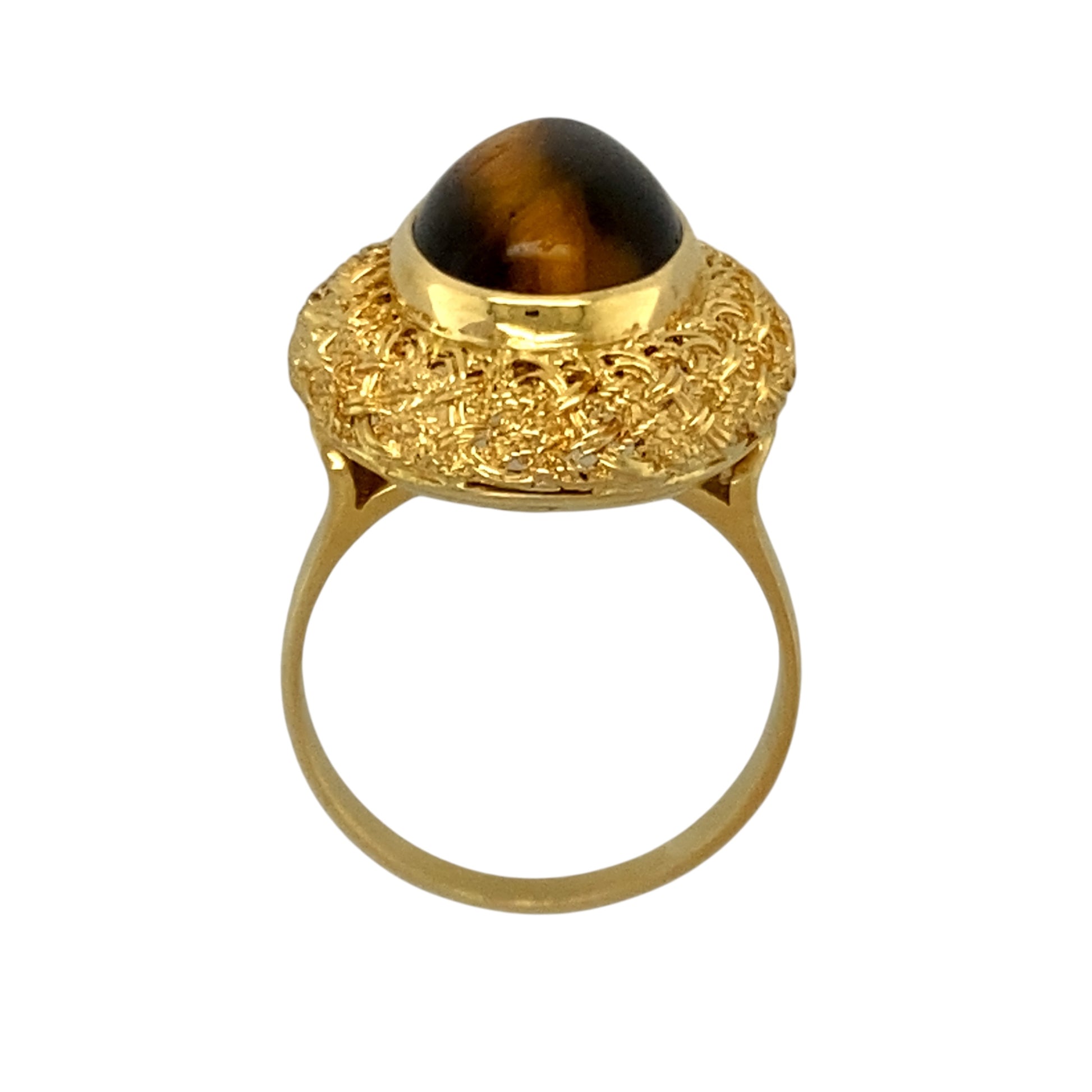 18ct Gold & Tiger's Eye Oval Cut Stone Weave Detail Ring