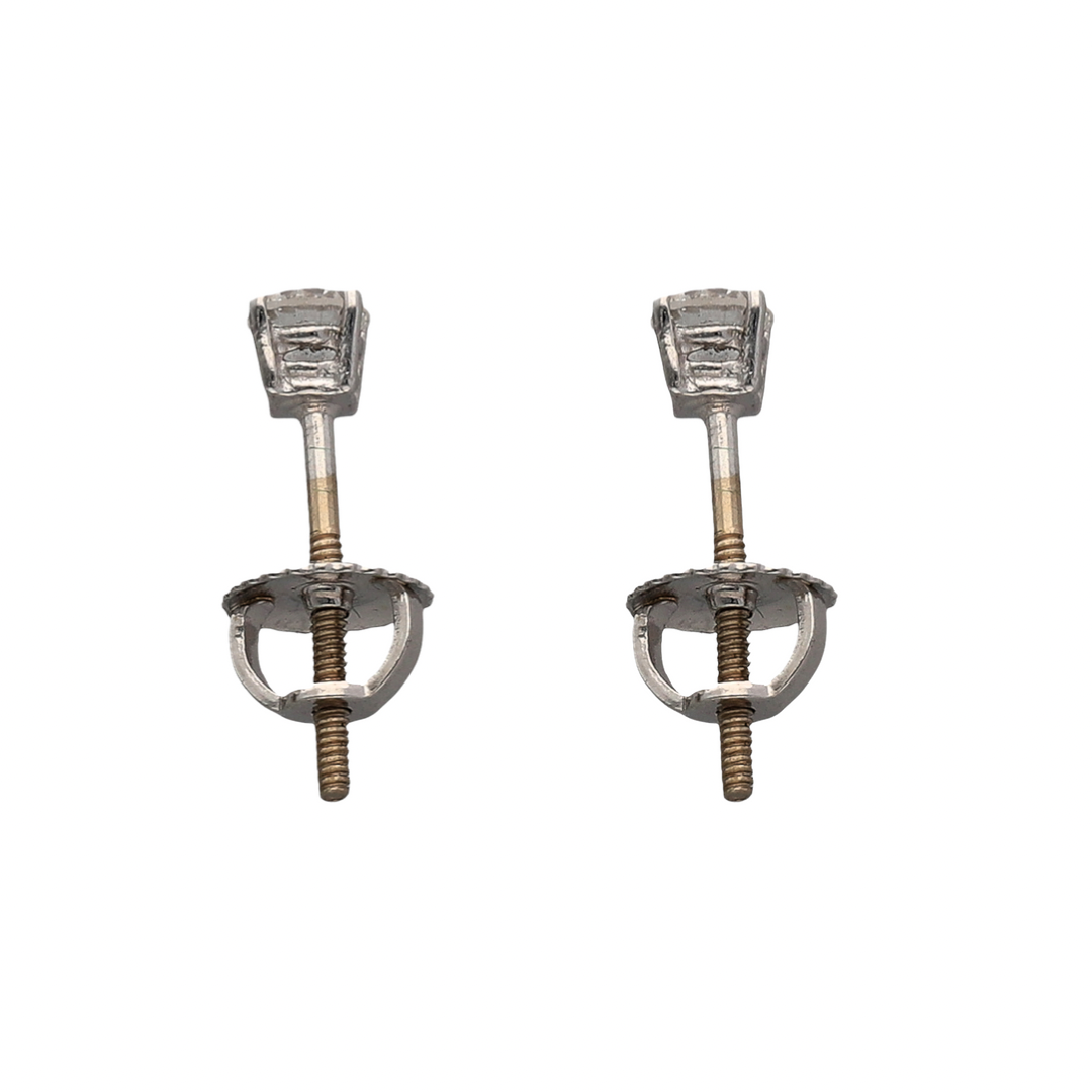 New 18ct White Gold 30pt Diamond Stud Earrings with the weight 0.90 grams. There is 30pt in total in the earrings with 15pt on each stud. The Diamond are approximately Si1 and colour I -J. The earrings have screw backs for extra safety and each stud is approximately 15mm long
