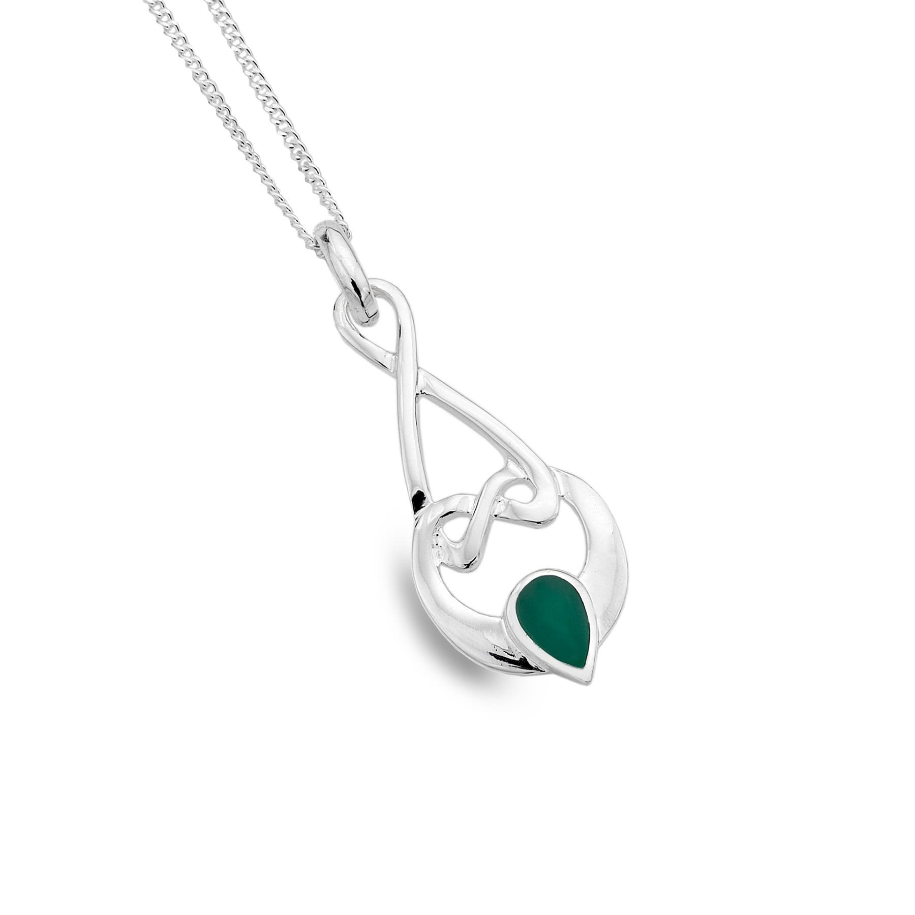 925 Silver Celtic Loop Green Agate Pendant Necklace