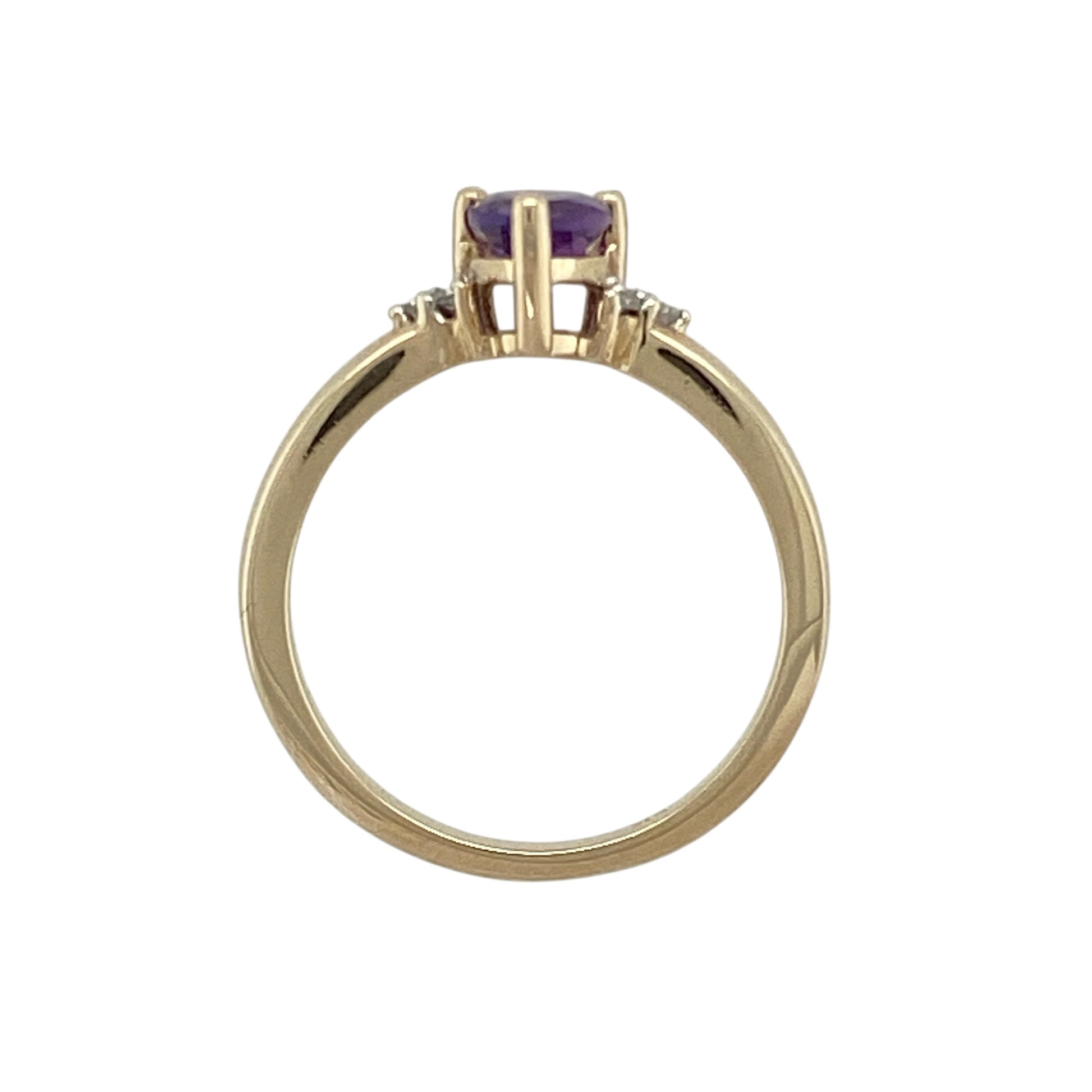 Material: Made from 9-carat yellow gold, the polished finish enhances the rich purple hue of the amethyst and the sparkle of the surrounding stones.