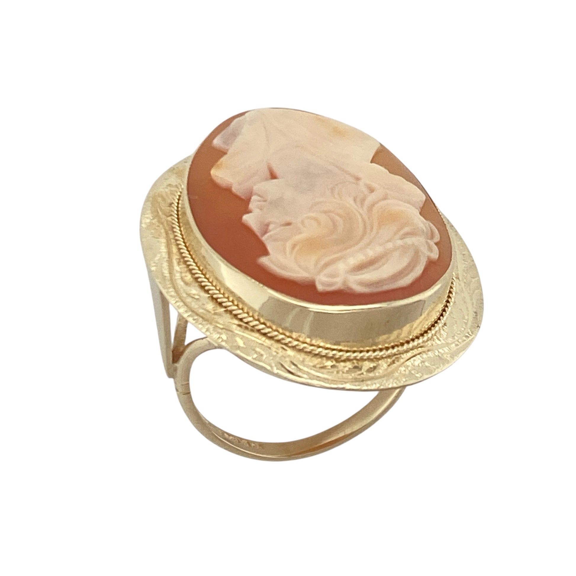 9ct Gold & Large Cameo Set Engraved Patterned Setting Ring