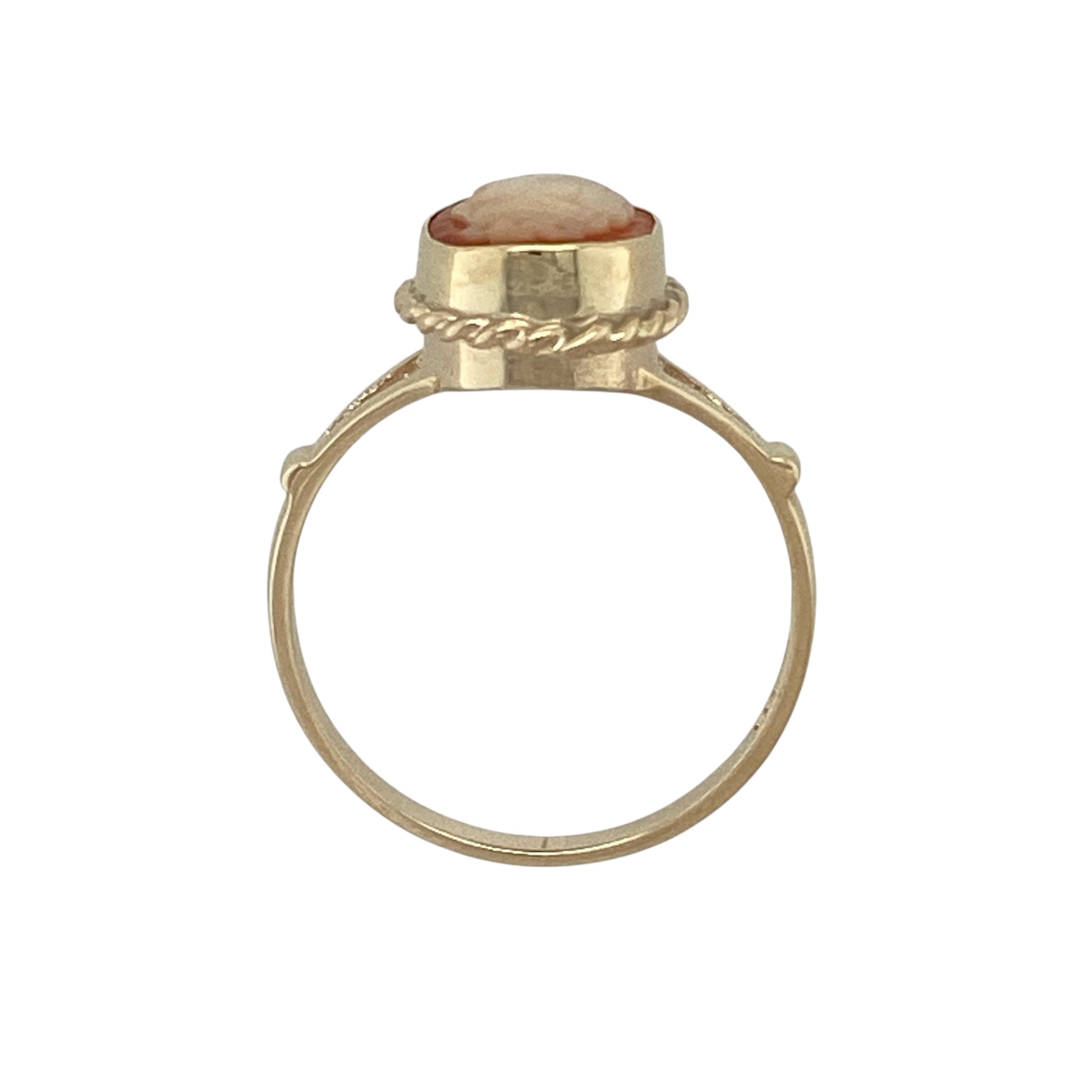 Design: The ring features a traditional oval cameo as the focal point, framed by a decorative rope-style surround that enhances its classic and refined appearance.