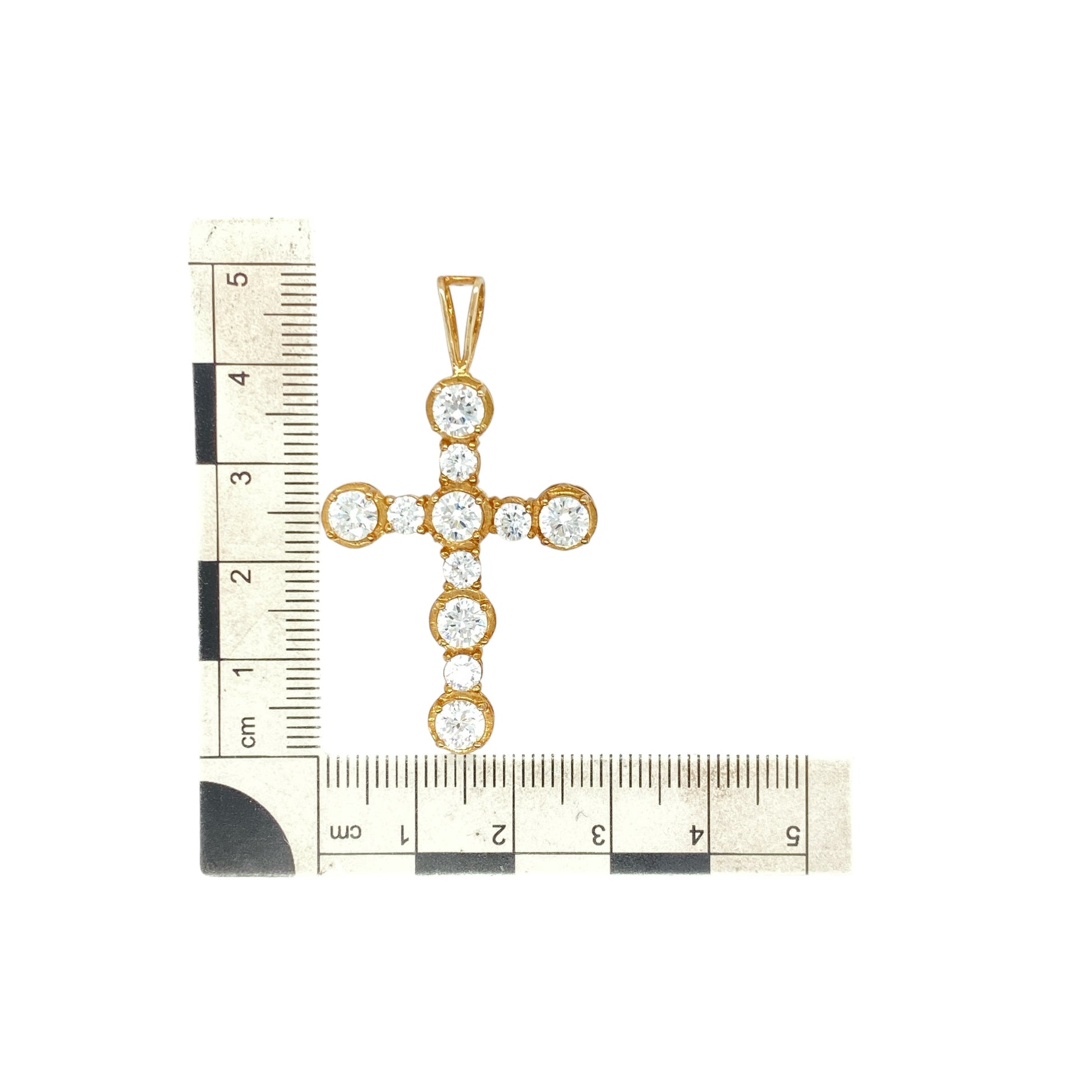 Design: The pendant features a traditional cross shape fully adorned with cubic zirconia stones ranging from 5mm to 4mm in diameter, creating a dazzling effect with beautiful variation.