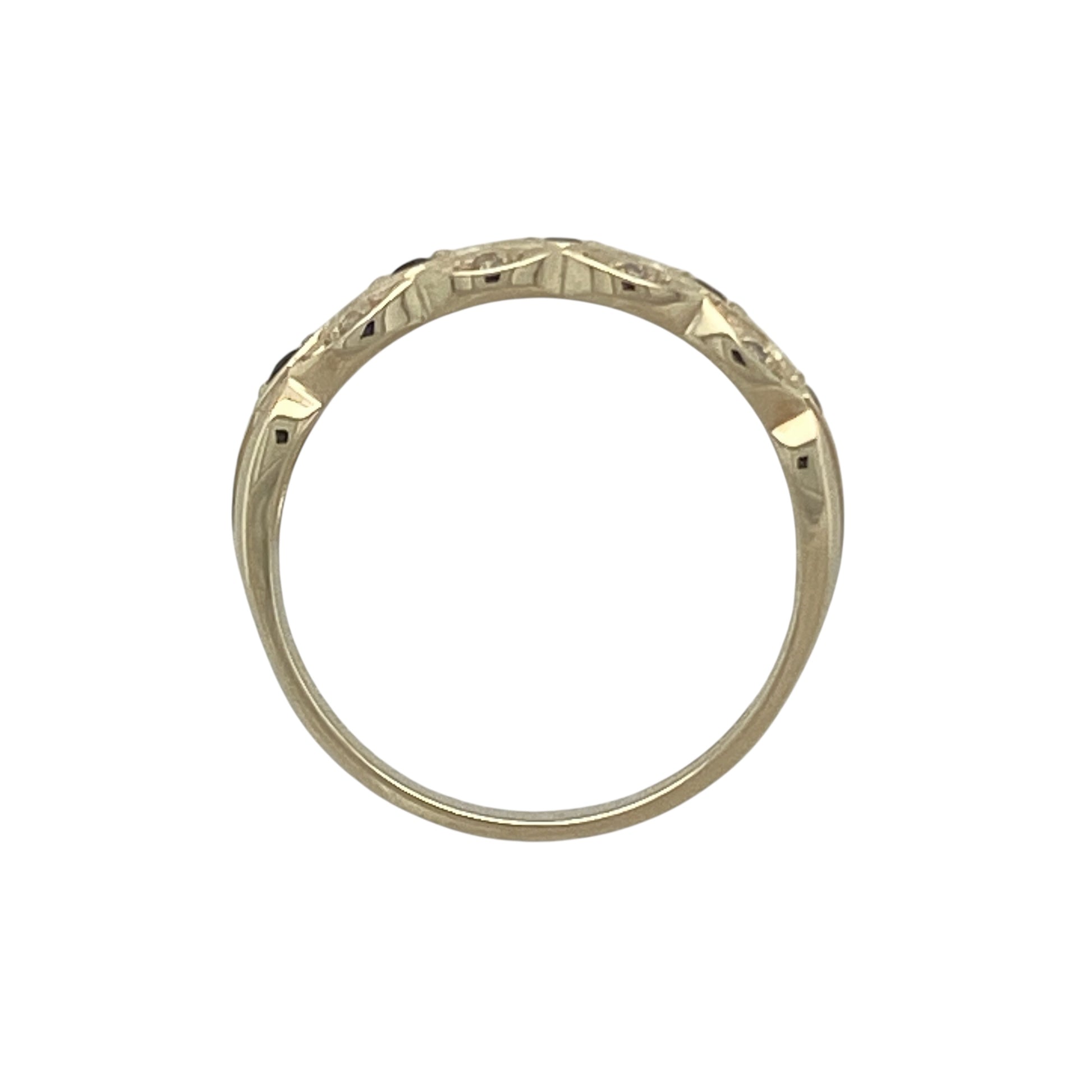 9ct Gold Diamond & Sapphire Set Patterned Band Ring