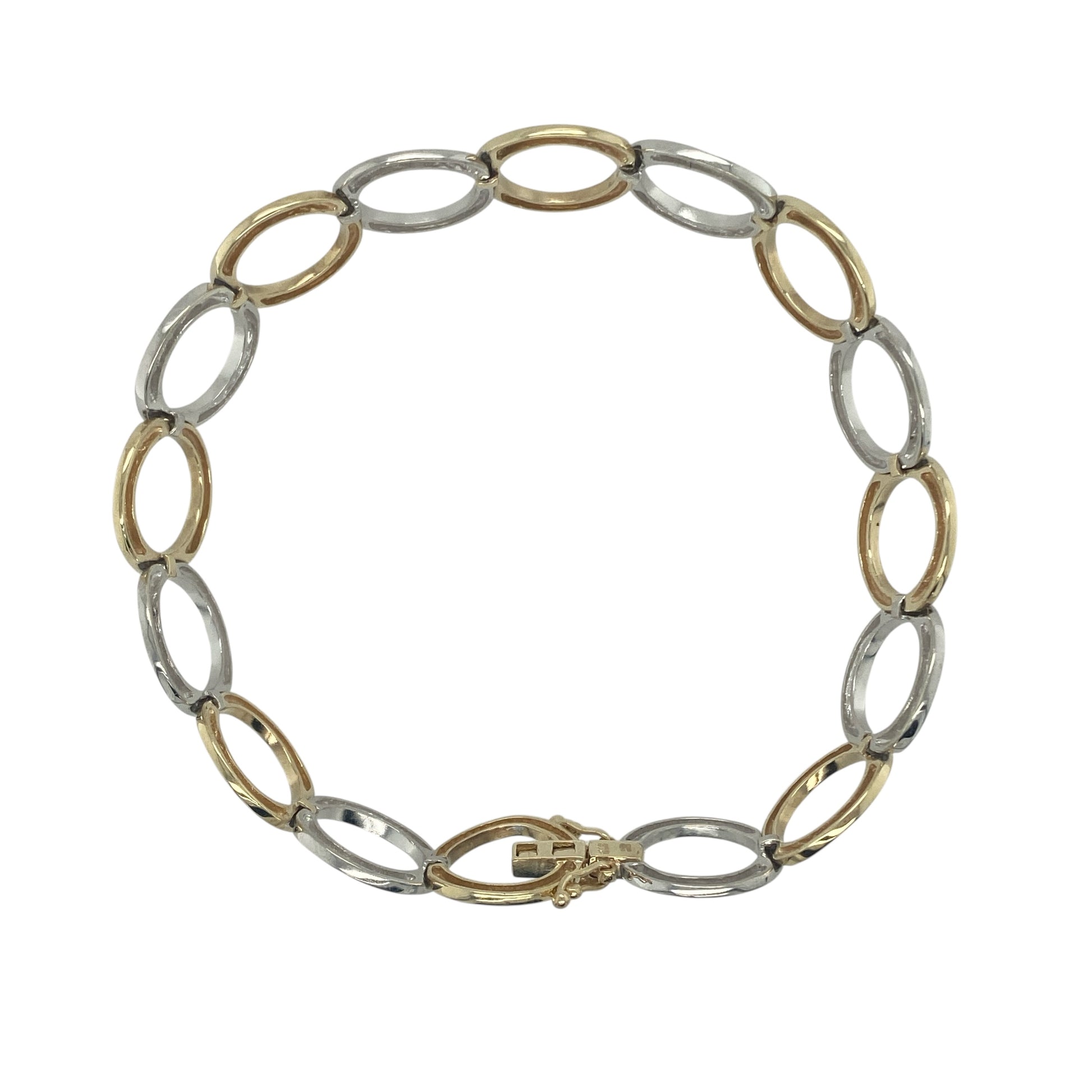 Bring bold elegance and refined sparkle to your collection with this pre-owned 9ct yellow and white gold diamond circle link bracelet, a striking design perfect for statement wear.