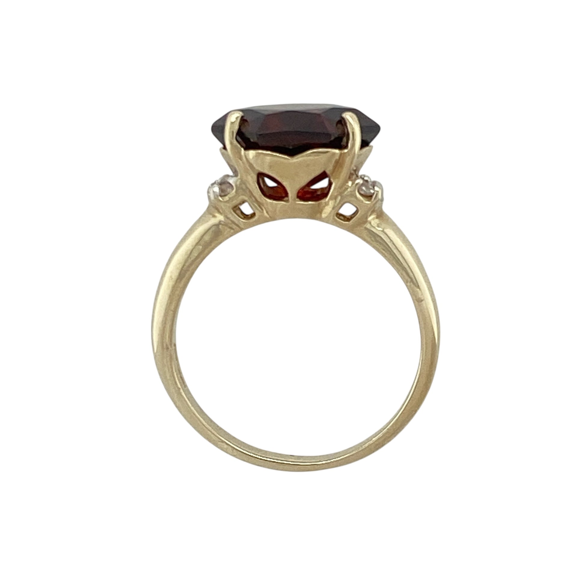 Material: Made from 9-carat yellow gold, the polished finish complements the deep red of the garnet and enhances the sparkle of the accent stones.