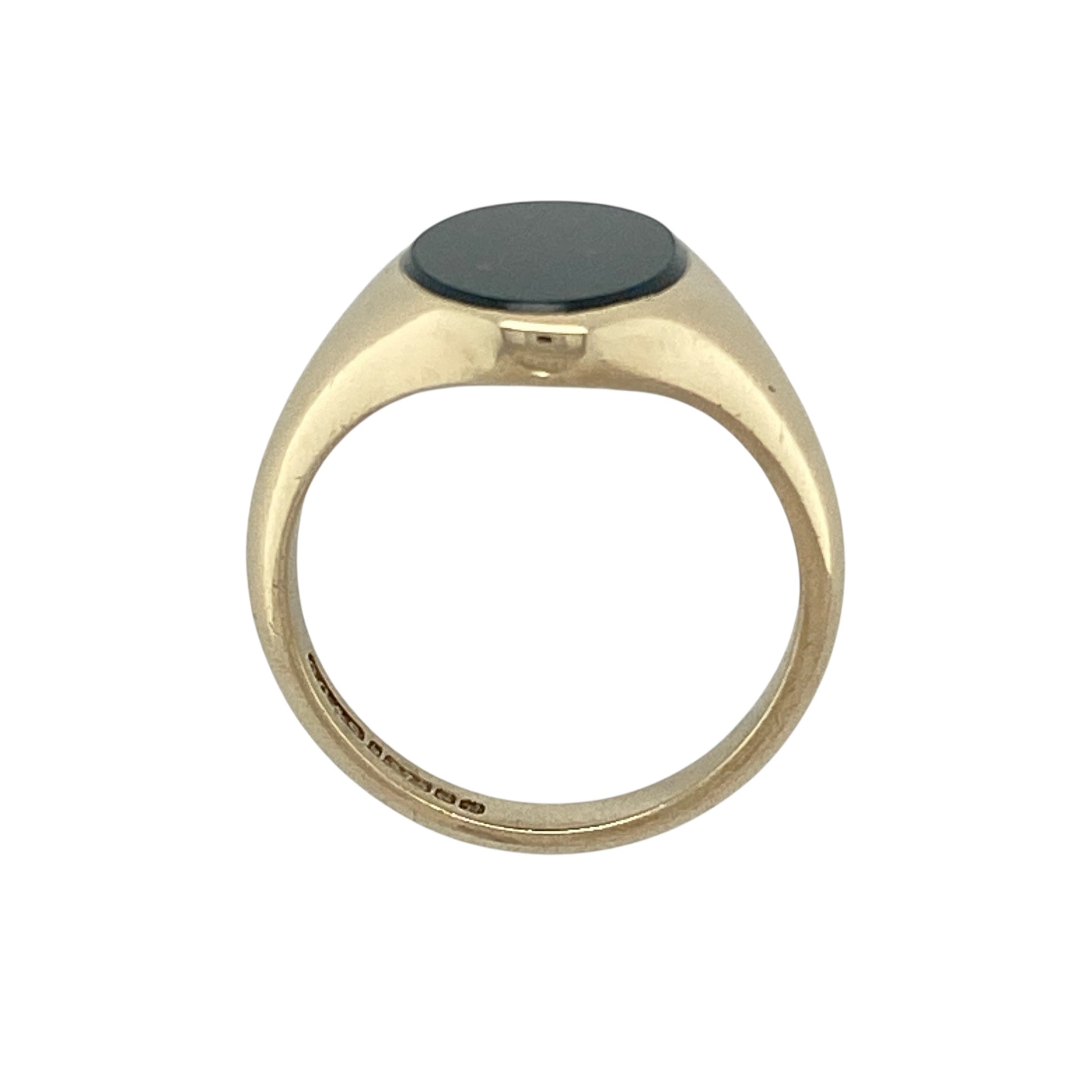 Bring bold character and timeless elegance to your collection with this pre-owned 9ct yellow gold and bloodstone oval signet ring, offering a striking design and refined presence—perfect for making a sophisticated statement.