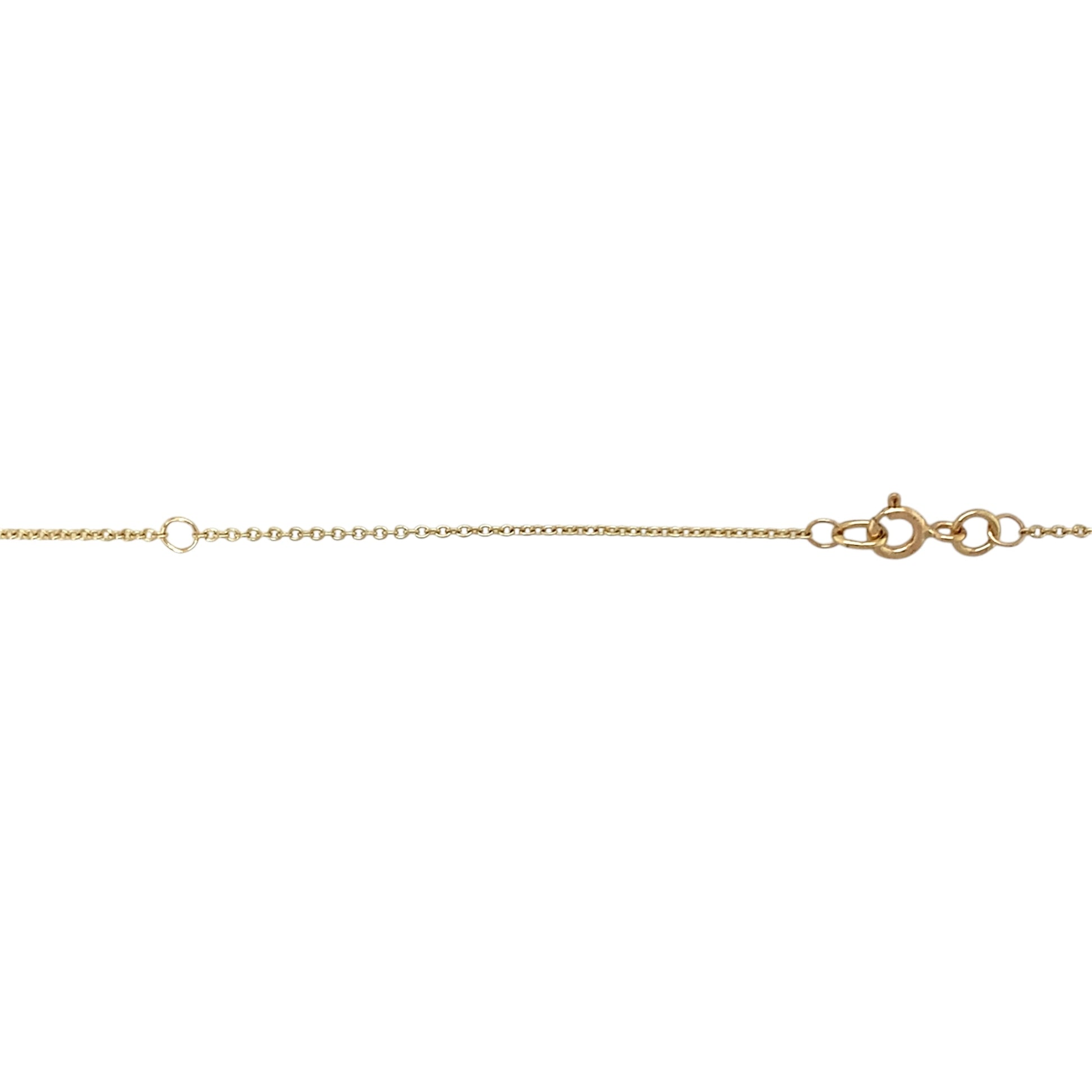 Preowned 9ct Yellow Gold & Lavender Cubic Zirconia Bar Pendant on an adjustable 16" - 18" trace chain with the weight 3.70 grams. The stones are each approximately 2mm diameter