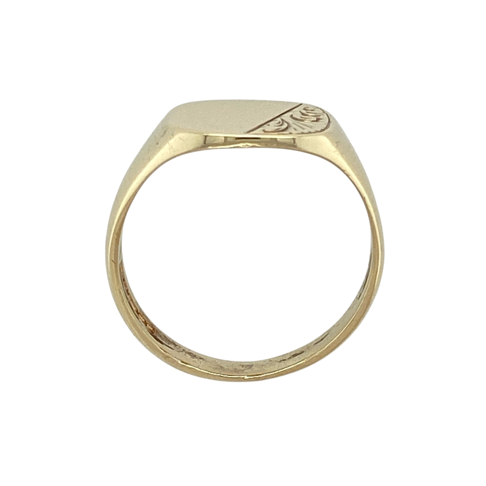Bold and detailed, this pre-owned 9ct yellow gold signet ring features classic styling with ornate patterning—perfect for those who appreciate timeless design with a distinctive touch.