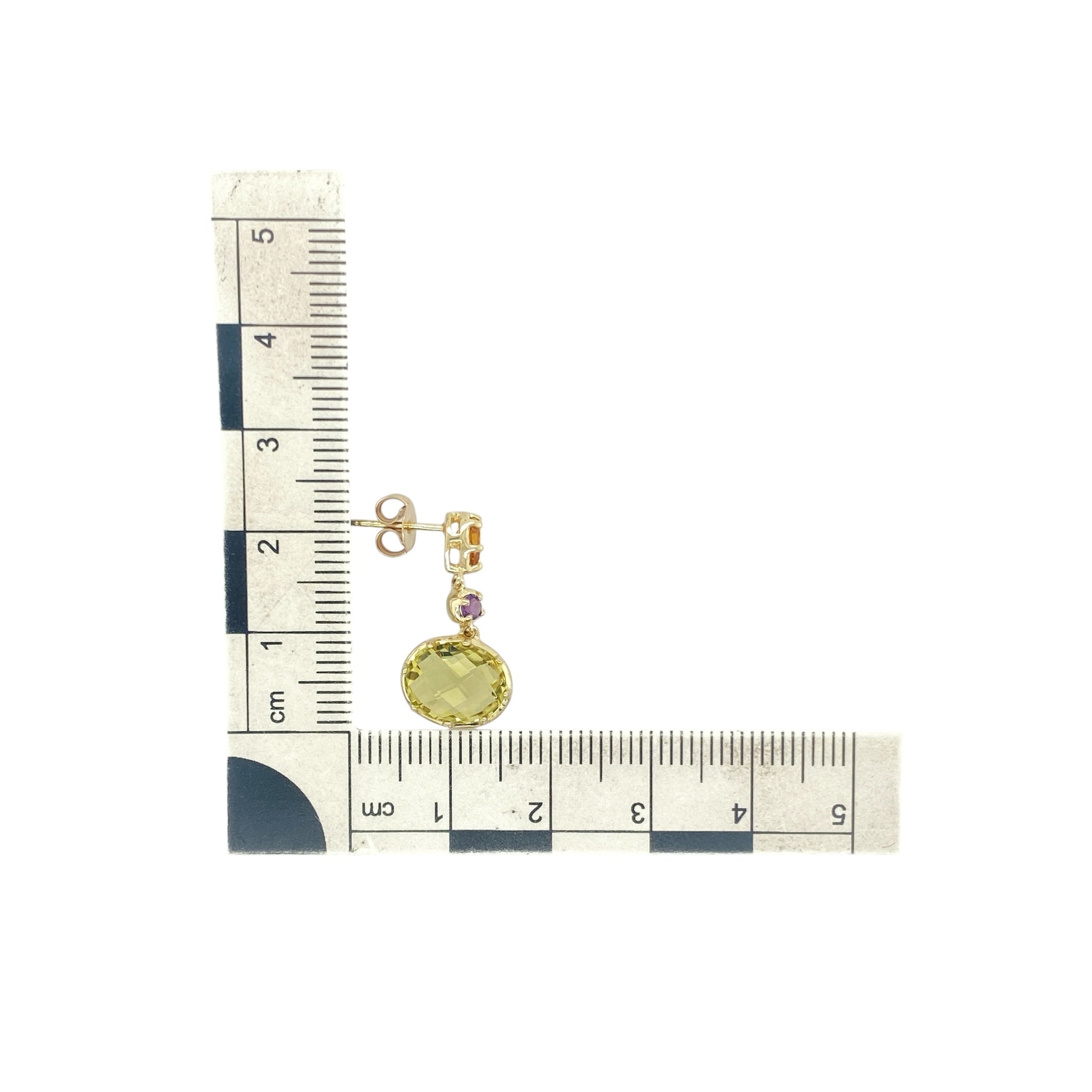 9ct Gold Peridot, Citrine & Amethyst Set Drop Earrings