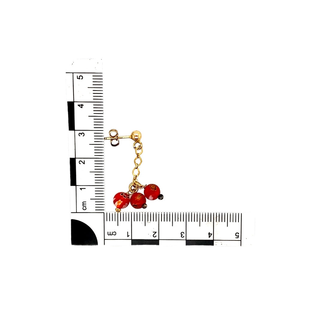 9ct Gold & Red Floral Stone Drop Earrings