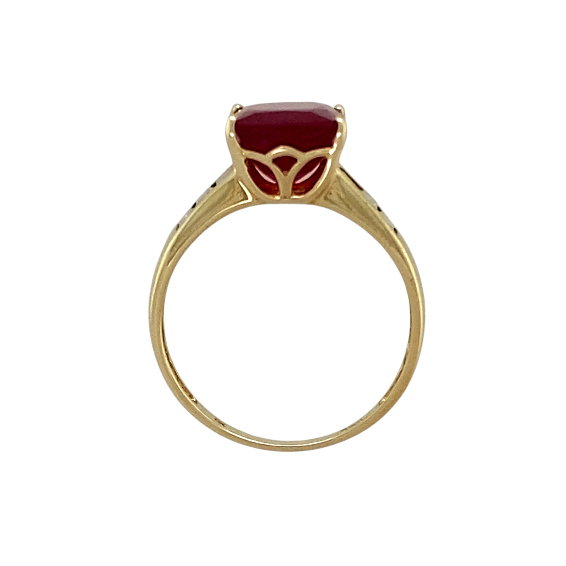 Add a bold and elegant touch to your jewellery collection with this pre-owned 9ct yellow gold red stone & cubic zirconia set ring, featuring: