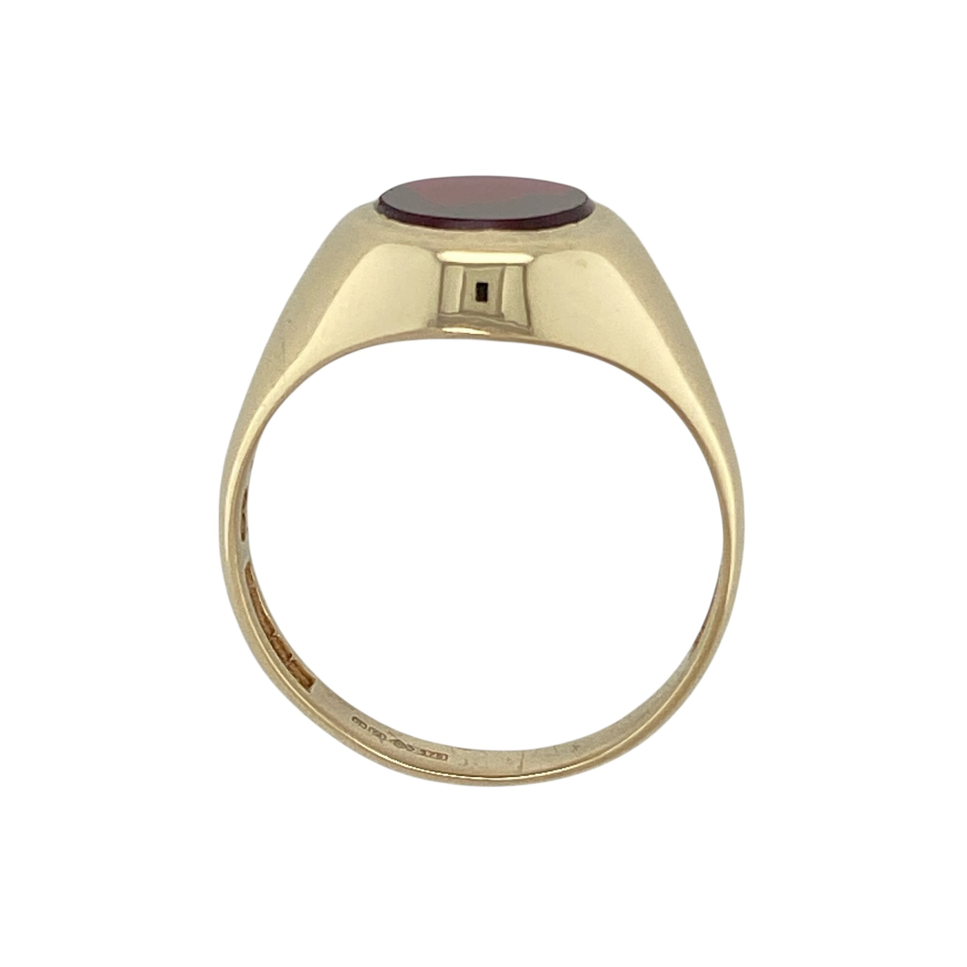 9ct Gold & Red Stone Set Oval Signet Ring