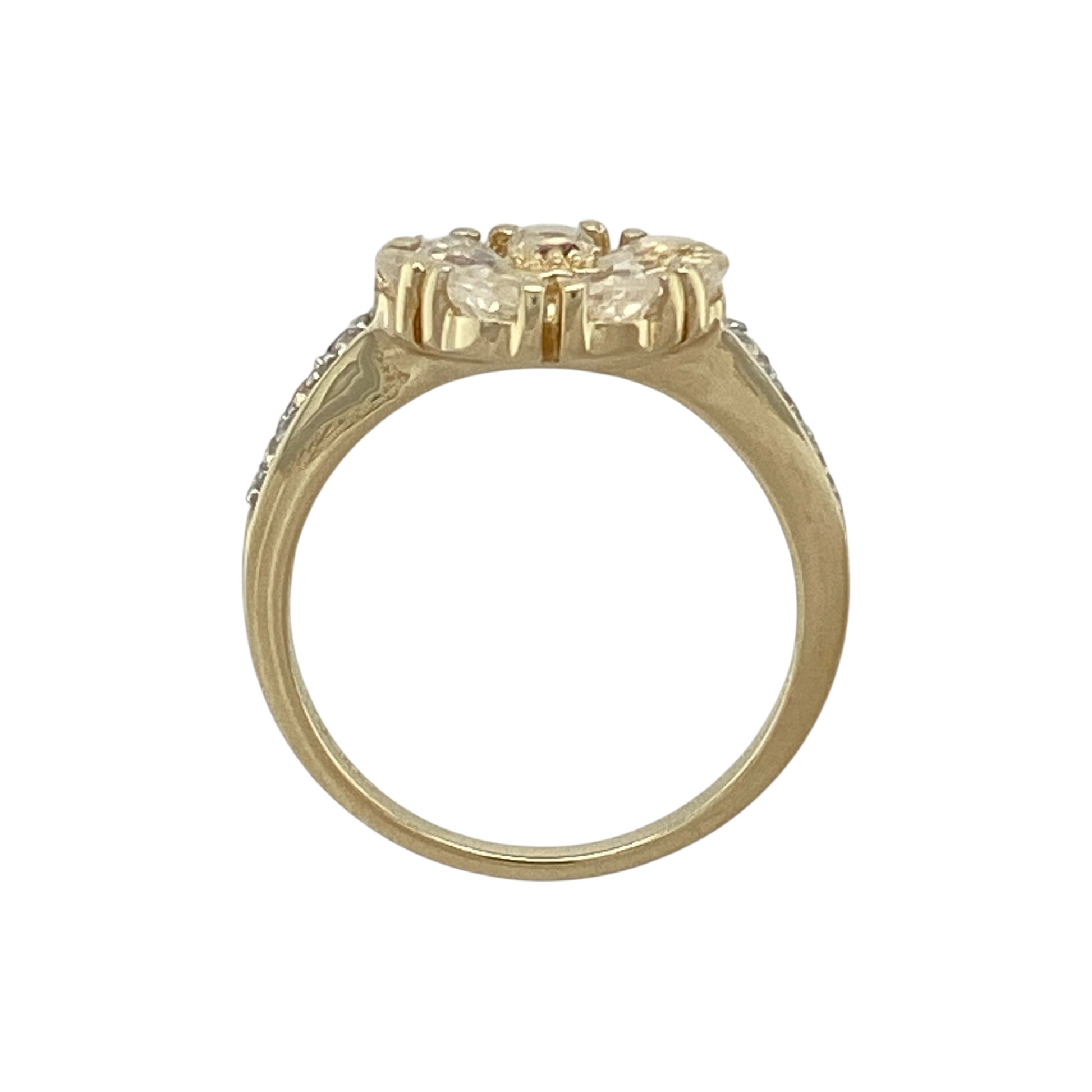 9ct Gold Ruby & Cubic Zirconia Set Flower Ring