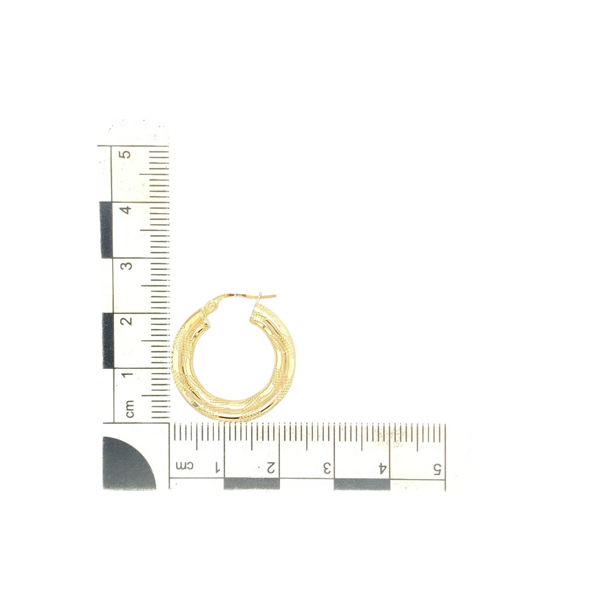Material: Made from 9-carat yellow gold, the polished finish enhances the textured surface while giving the earrings a warm glow.