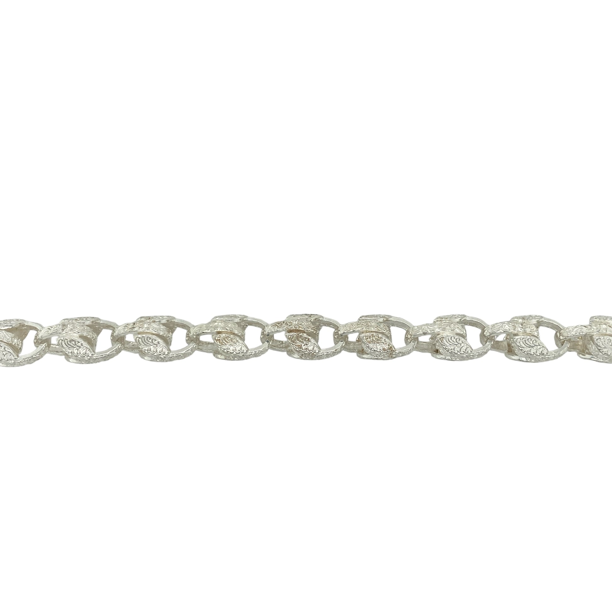 Design: The bracelet features tulip-shaped links with a patterned finish, each measuring 11mm in width for a striking and eye-catching look.
