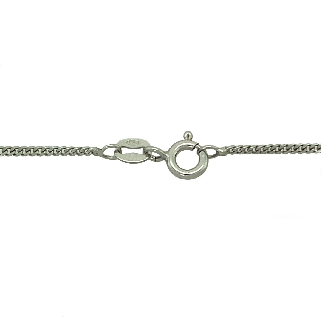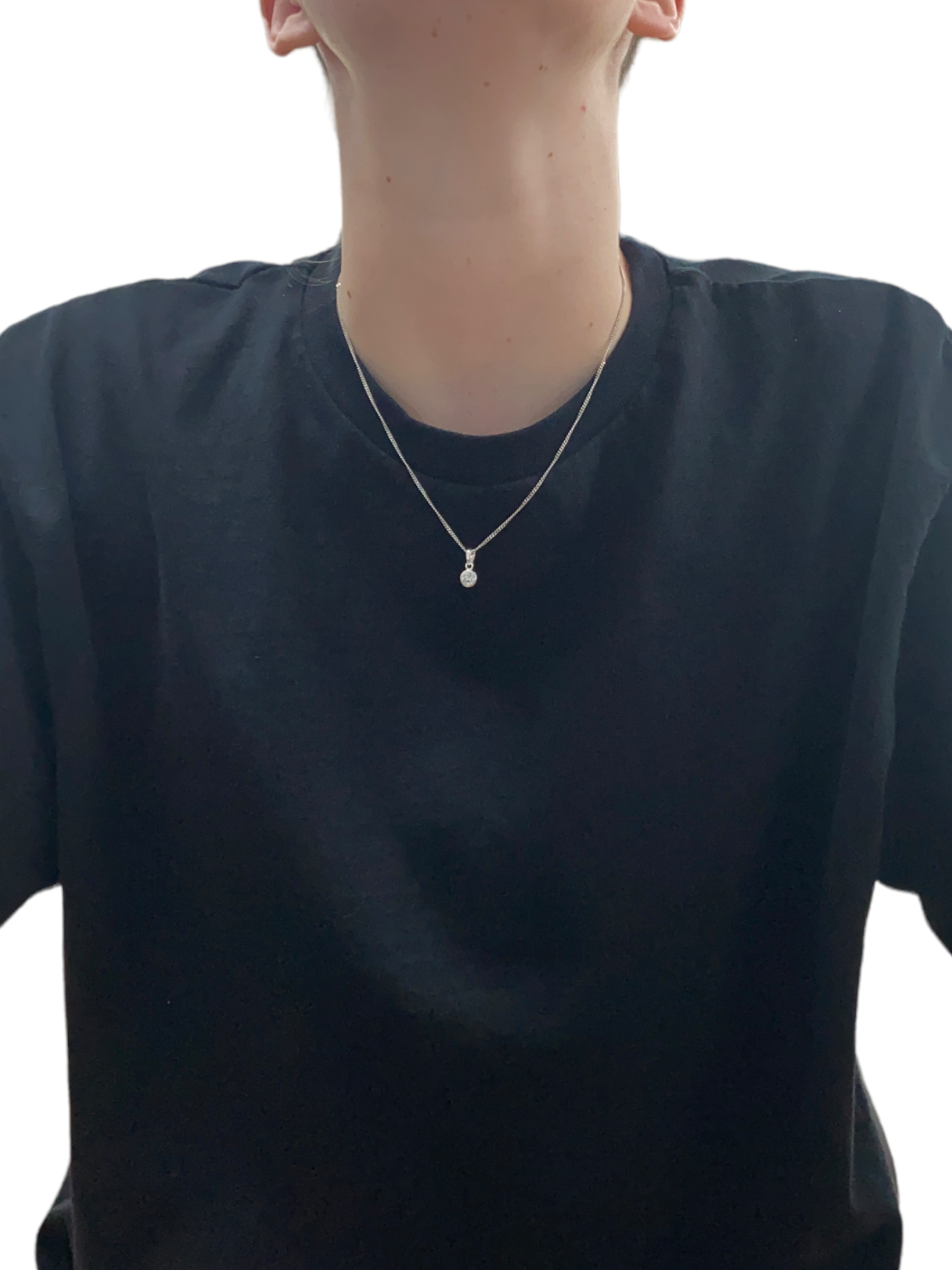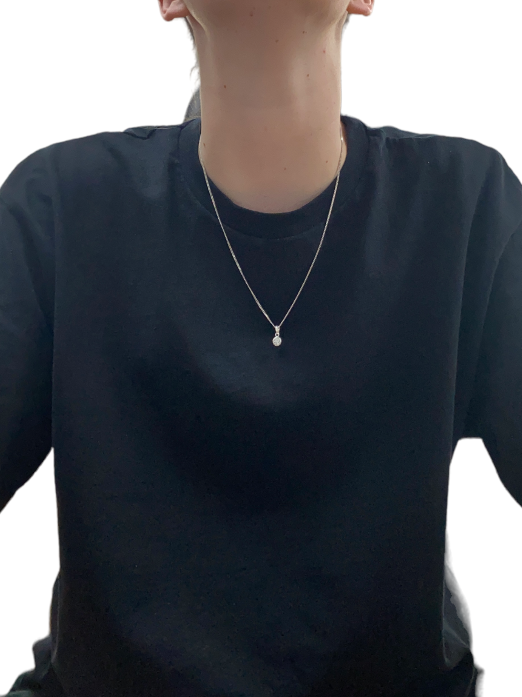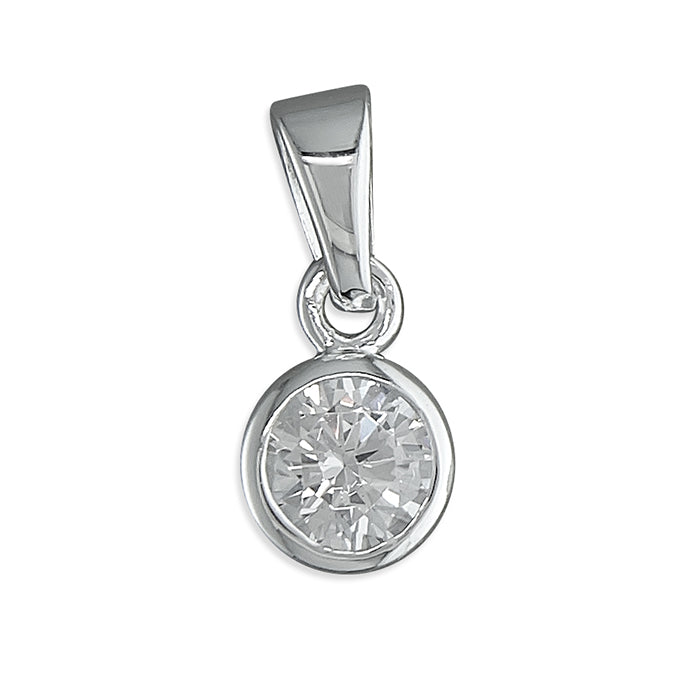New 925 Silver April Birthstone Pendant on either an 18" or 20" curb chain. The pendant is set with a cubic zirconia stone which is 5mm diameter. The pendant is 14mm long including the bail