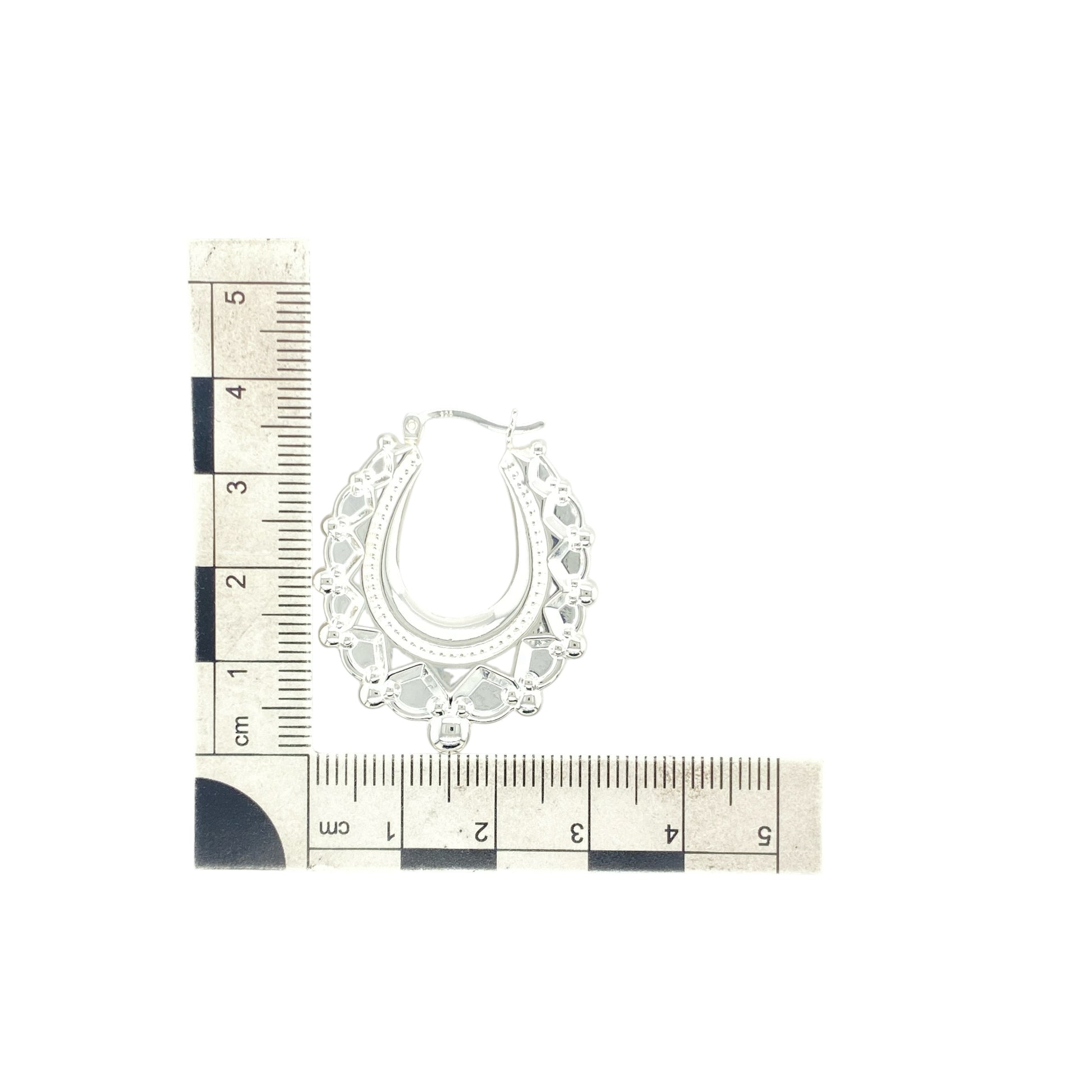 New 925 Silver Large 31mm Fancy Oval Creole Earrings
