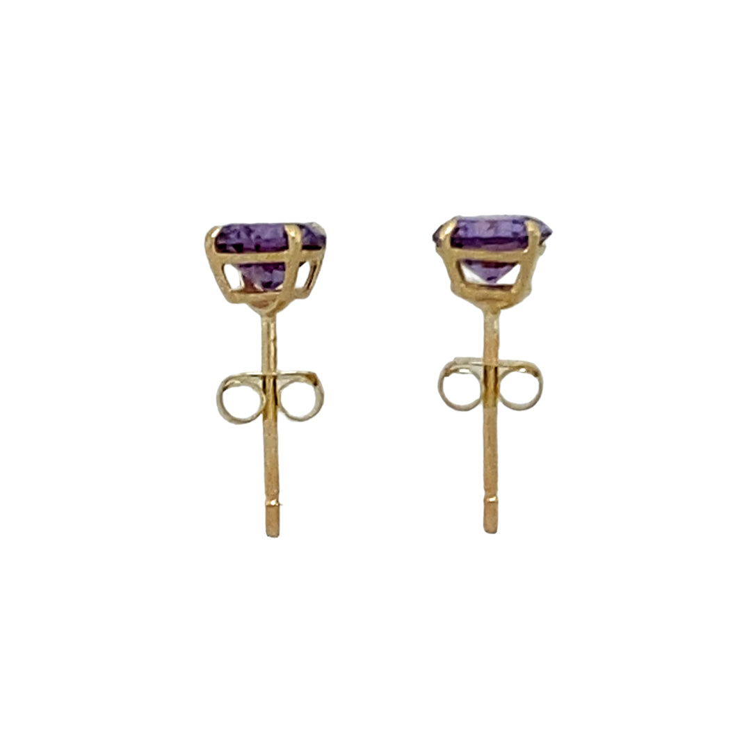 New 9ct Yellow Gold February Birthstone Stud Earrings with the weight 0.50 grams. The earrings are set with a synthetic amethyst stone which is 5mm diameter