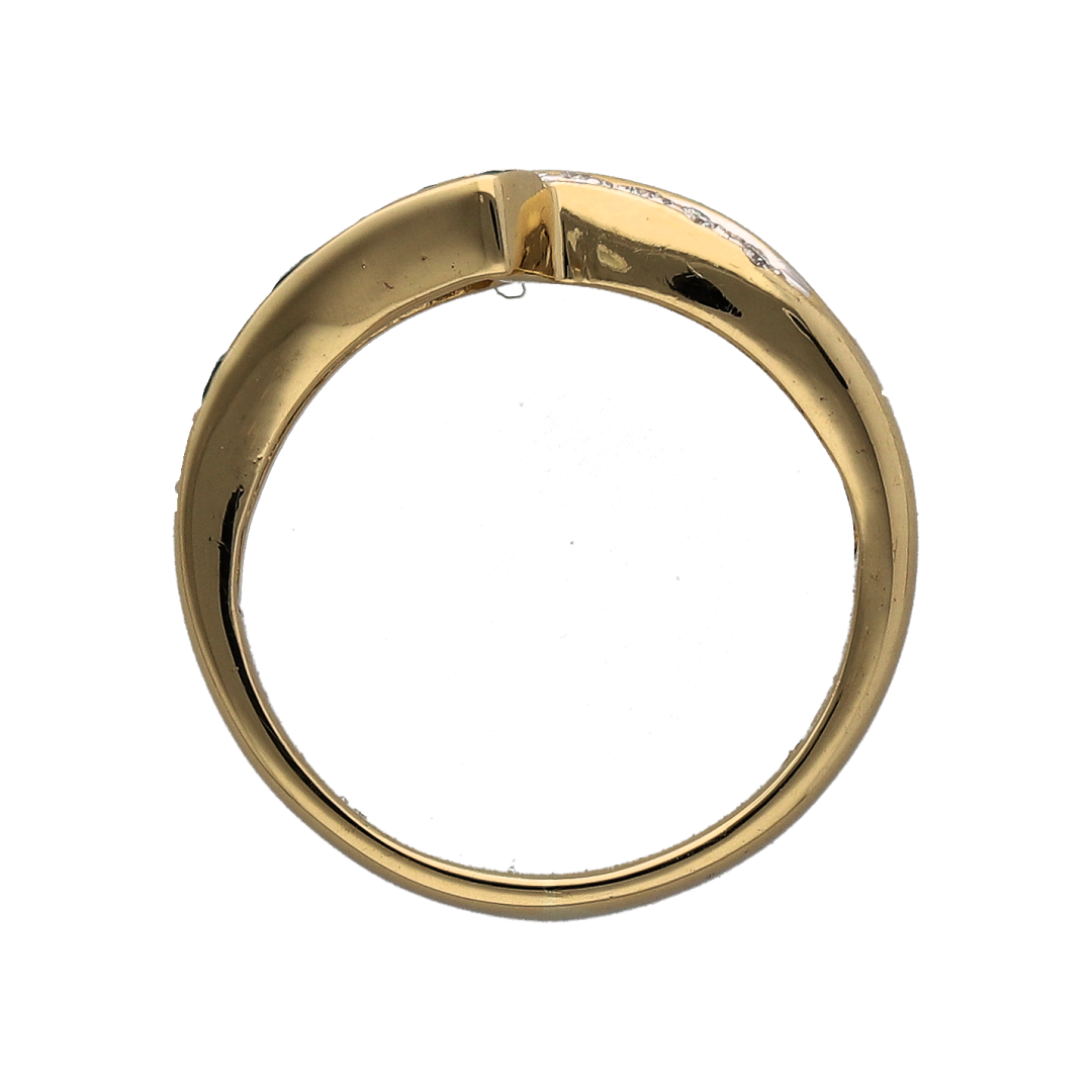18ct Gold Diamond & Emerald Set Crossover Band Ring