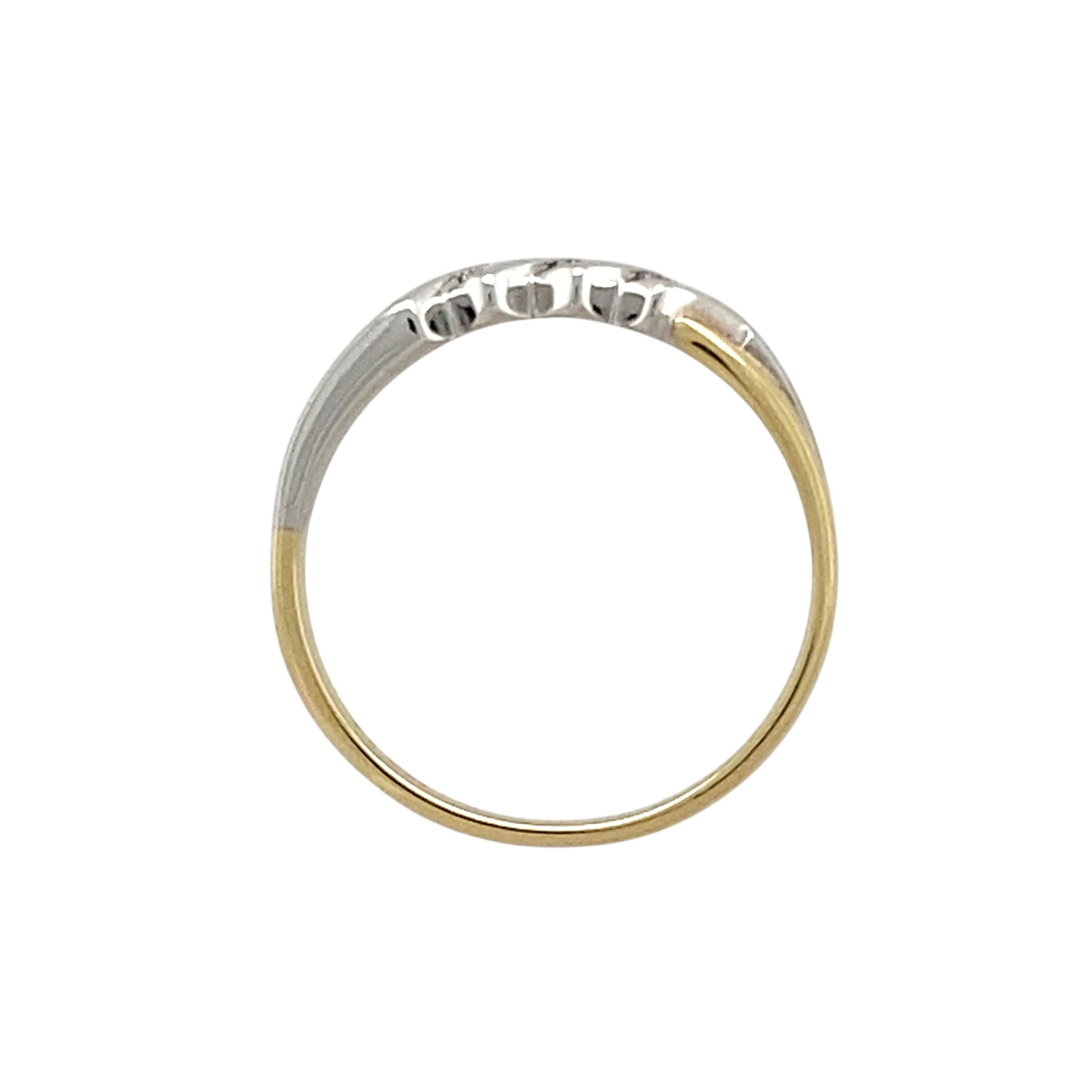 Add a unique and contemporary touch to your jewellery collection with this pre-owned 18ct yellow and white gold & diamond trilogy modern style zig-zag band ring, featuring: