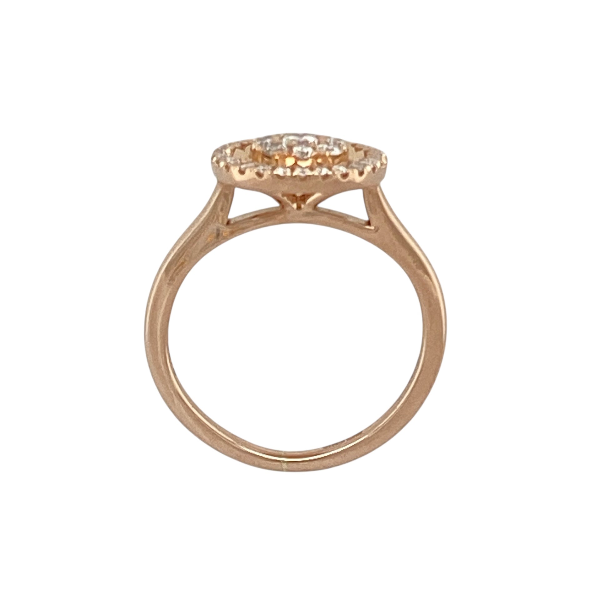 Make a sparkling statement with this pre-owned 18ct rose gold diamond cluster halo ring—an eye-catching design full of detail, radiance, and romantic charm.