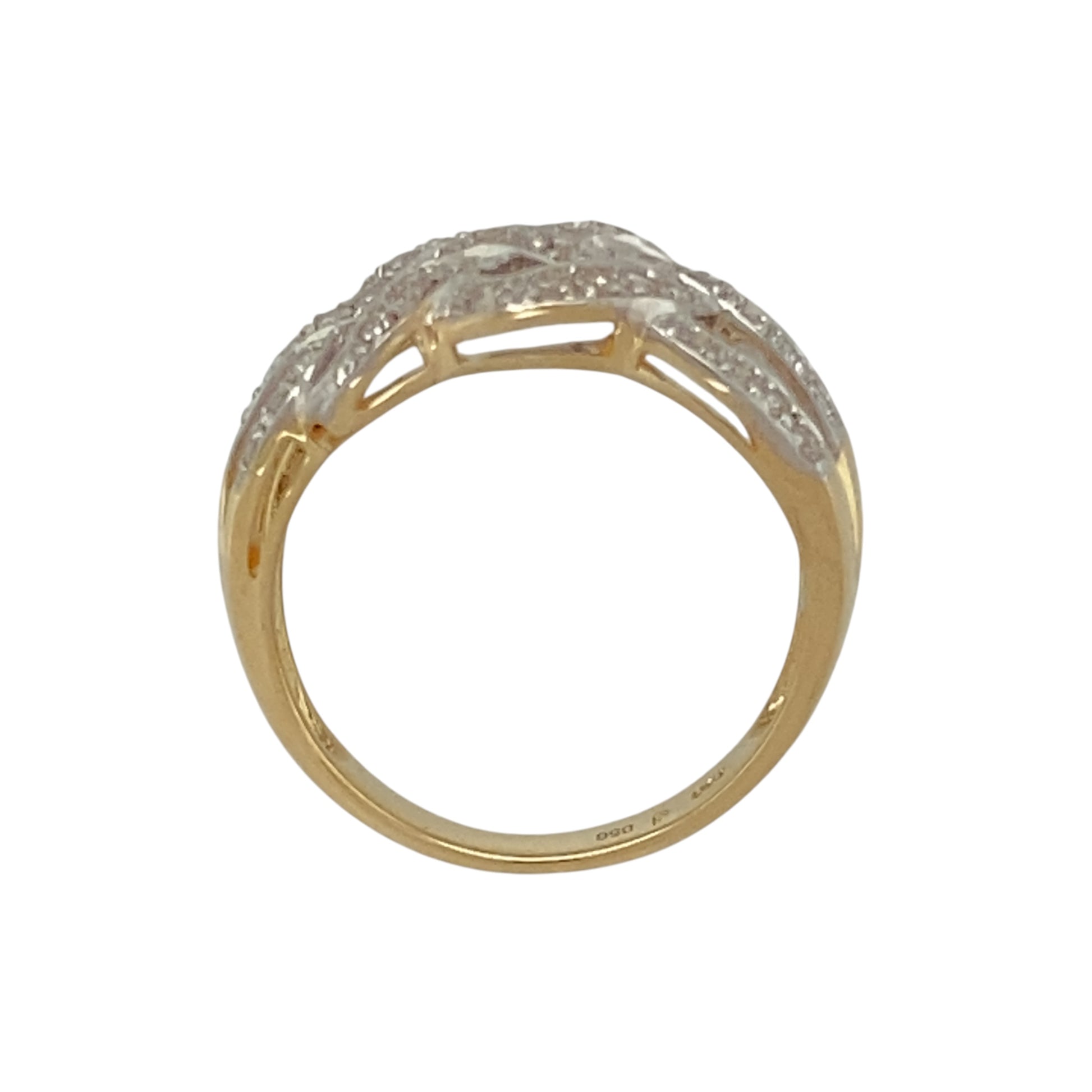 18ct Gold & Diamond Set Open Weave Wide Band Ring