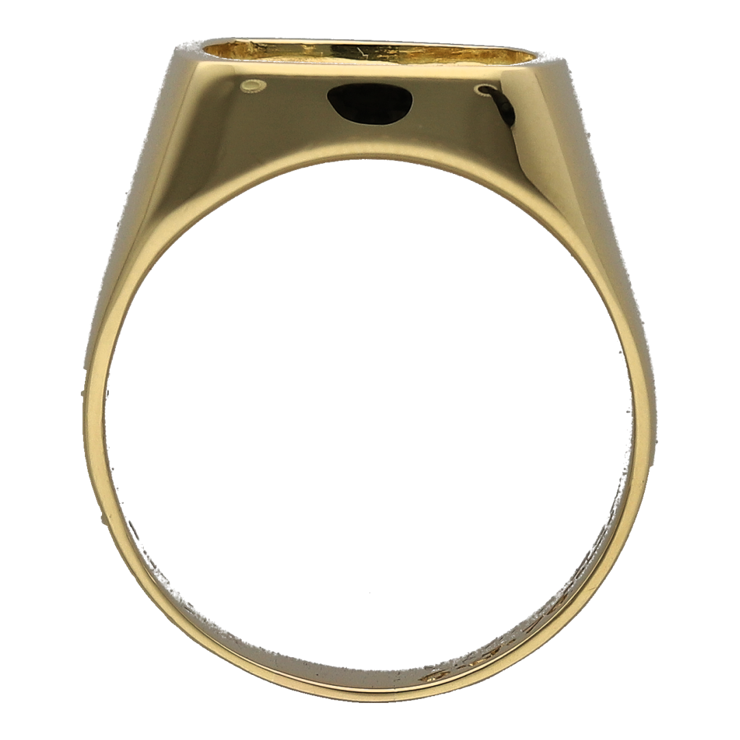 Material: Made from 18-carat yellow gold, the ring has a rich, polished finish that enhances its solid, weighty profile.