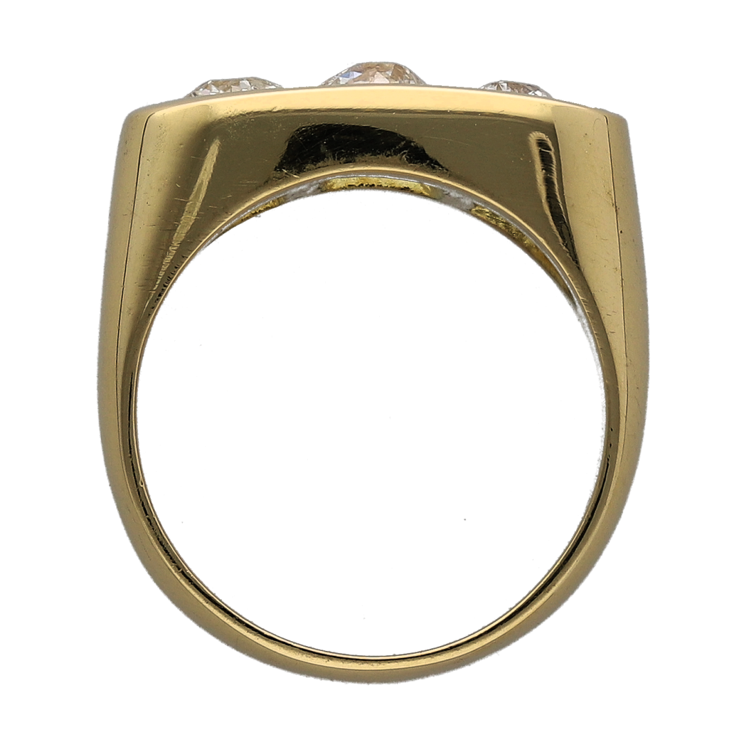 Make a bold statement with this striking pre-owned 18ct yellow gold & diamond set trilogy signet ring, featuring: