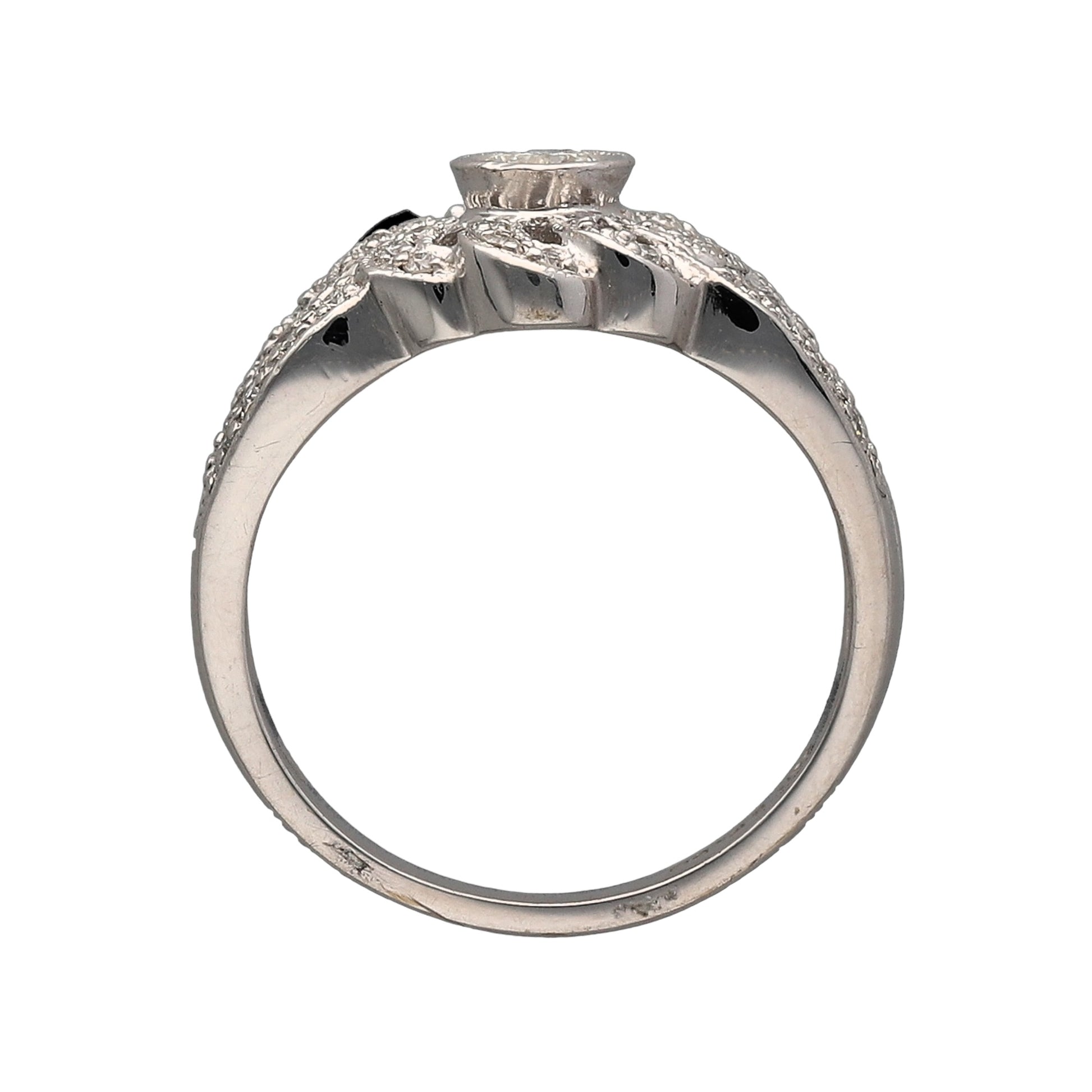 Preowned 18ct White Gold & Diamond Set Flower Ring in size L with the weight 5.90 grams. There is approximately 50pt of diamond content set in total and the front of the ring is is 12mm high