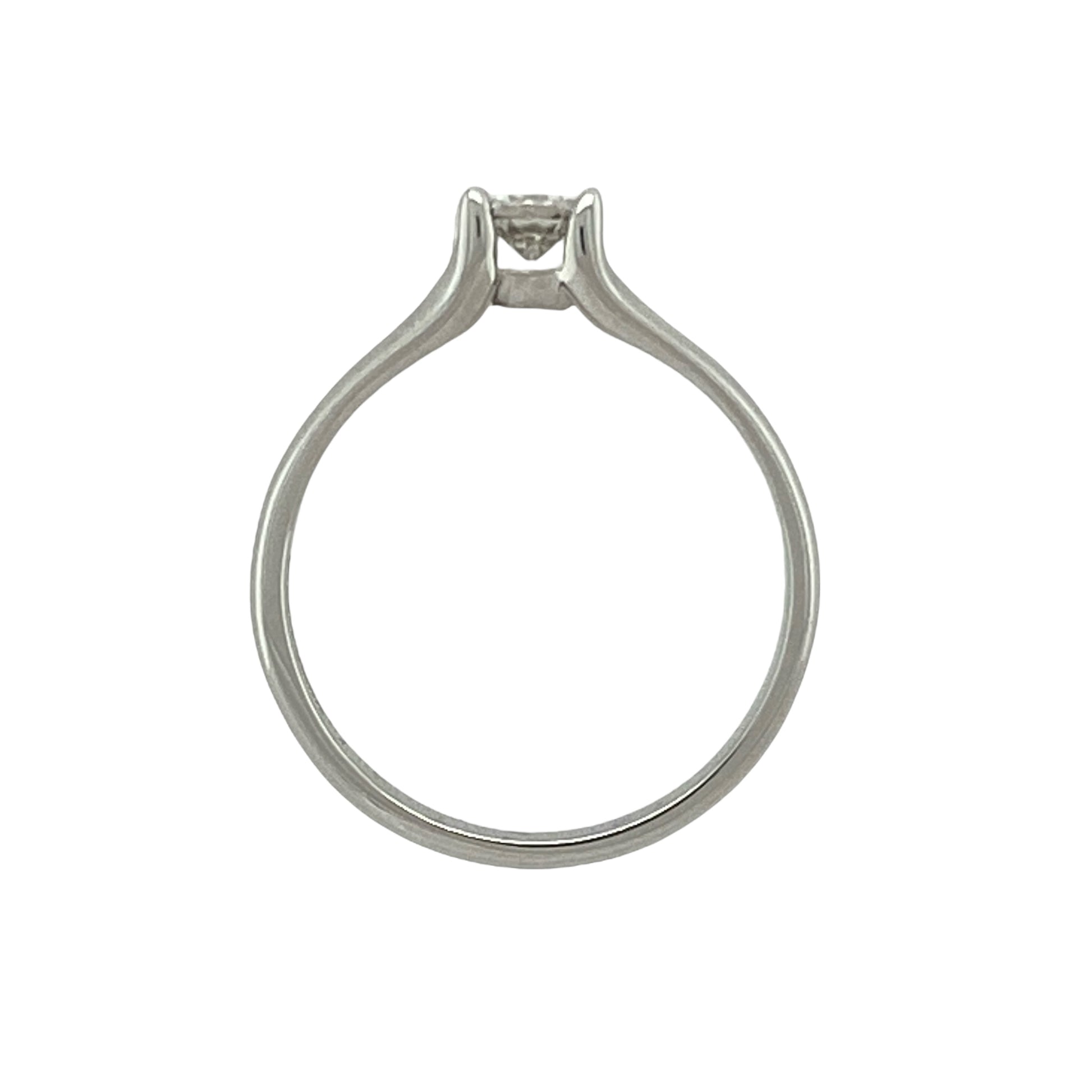 Material: Made from 18-carat white gold, the polished finish offers a sleek, contemporary backdrop that enhances the diamond’s natural sparkle.