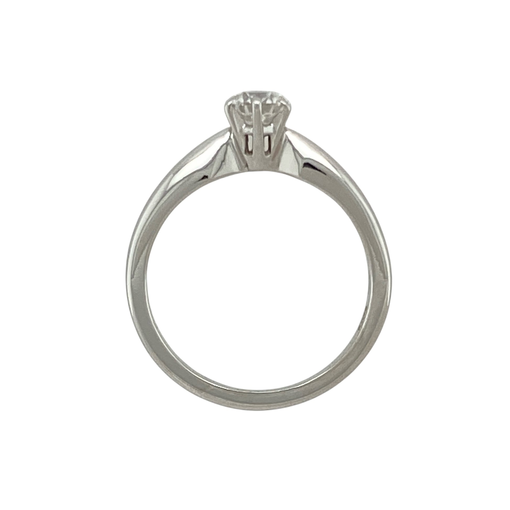 Material: Made from 18-carat white gold, the polished finish enhances the diamond’s brilliance and gives the ring a sleek, modern look.