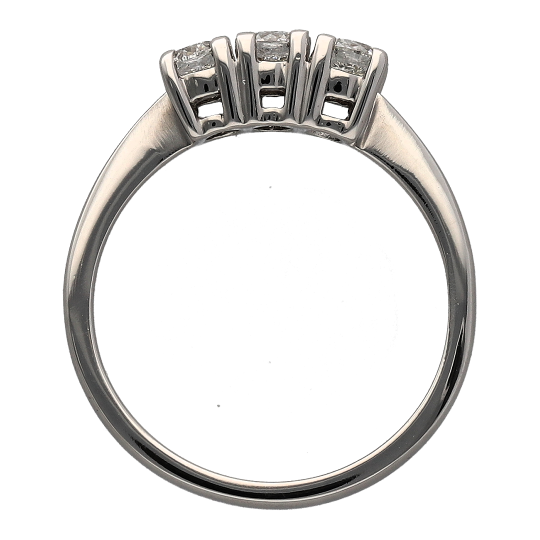 Design: The ring features three brilliant-cut diamonds, totalling approximately 0.50ct, arranged in a classic trilogy setting that represents life’s most meaningful moments.