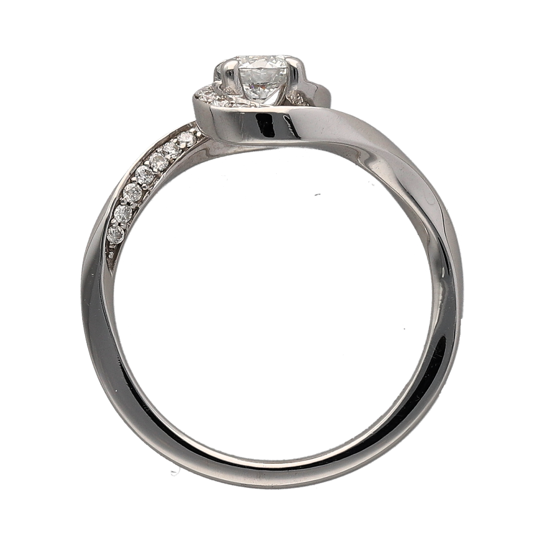 18ct White Gold & Diamond Set Twist Band Solitaire Ring