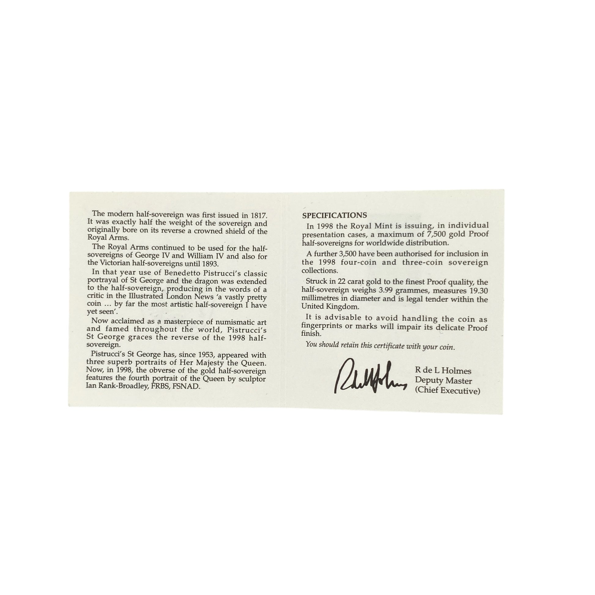 1998 22ct Gold Half Sovereign Coin